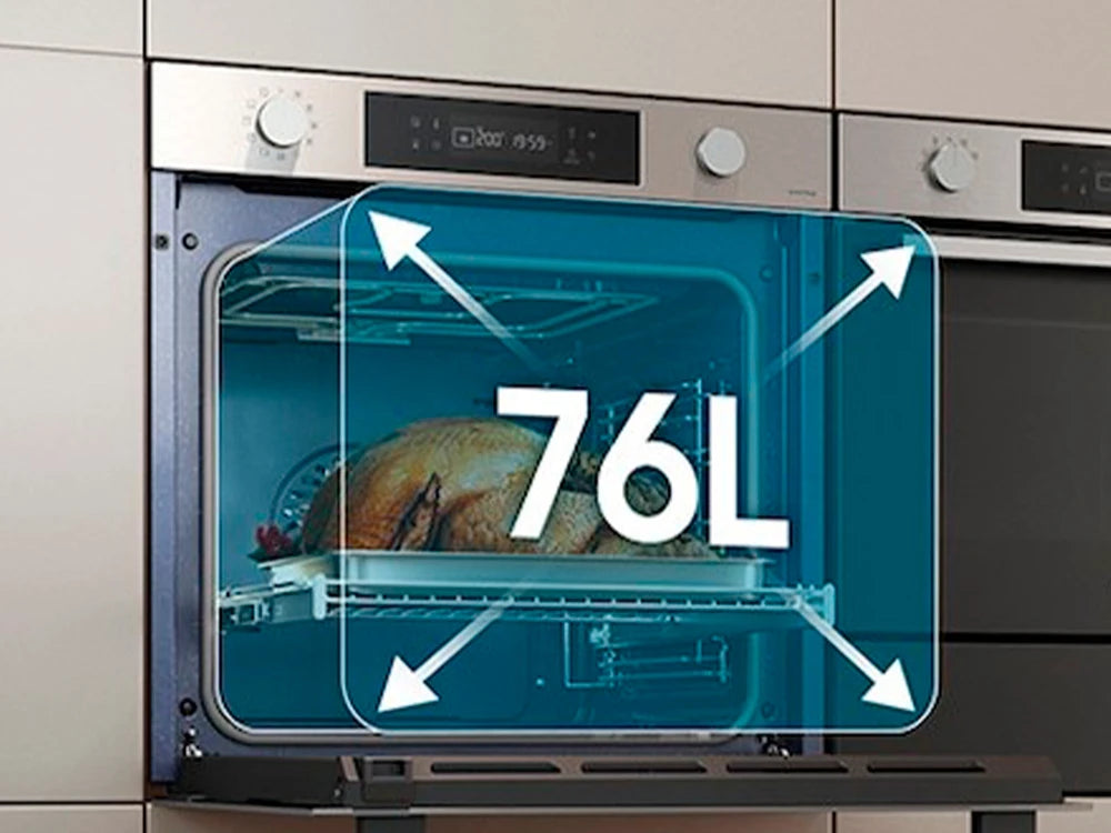 Cocina más platos y de mayor tamaño con un horno de 76 litros de capacidad. Descubre más posibilidades para cocinar en casa.