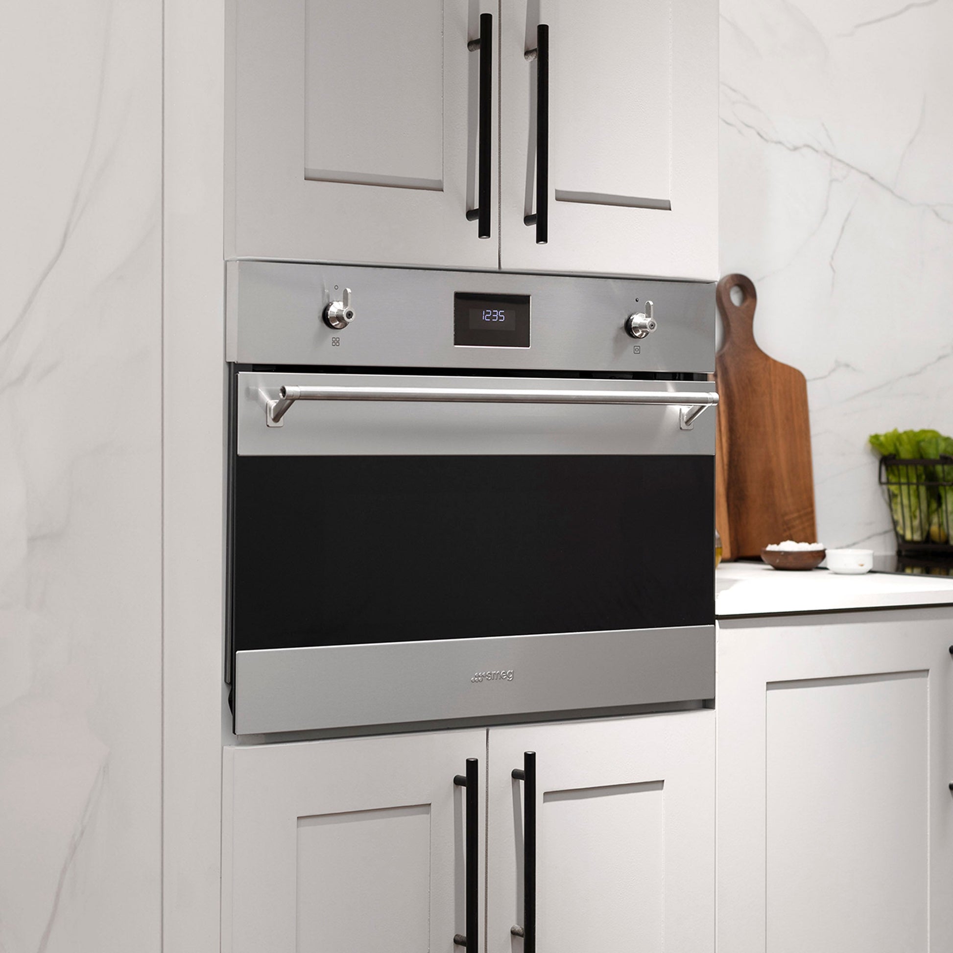El horno compacto SMEG de 45 cm combina estilo clásico y tecnología avanzada en un diseño en acero inoxidable anti-huellas. Su sistema de cocción eléctrico y método de microondas con grill ofrece cuatro funciones, incluyendo grill ancho, microondas, y combinación microondas + grill. Con plataforma Galileo, permite programar tiempo, inicio y fin de cocción, e incorpora un plato de chef especial para horneado. Su rango de temperatura va de 50 °C a 250 °C, y el grill alcanza 1500 W de potencia. Calidad italiana que solo SMEG puede ofrecer.