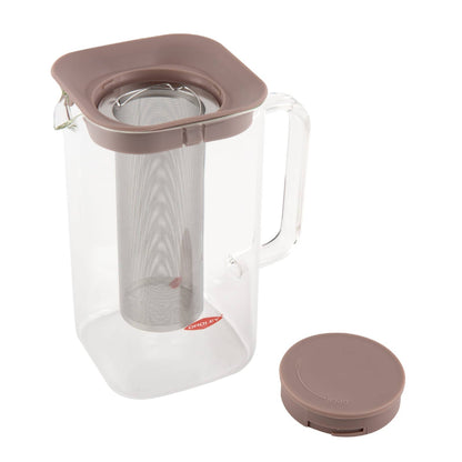 Jarra Trieste es perfecta para el agua, jugos y todas tus bebidas preferidas tiene un filtro integrado que impide que los sedimentos traspasen a la jarra, así puedas disfrutar del sabor puro suave y natural, el filtro integrado es desmontable hecho en acero inoxidable muy fino para preparar en ella té o infusiones, tanto frías como calientes. Fabricada con vidrio de borosilicato ultraligero y resistente al calor que no altera ni perjudica el sabor de tu infusión, tapa de plástico color nude, tiene un novedoso diseño modelo cuadrado elegante y diferente, puedes llevarlo directamente a la mesa, fácil de usar y limpiar, todas las piezas se pueden lavar en el lavavajillas, apto para el congelador.