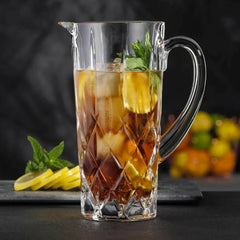 El set de bar NOBLESSE le brinda un toque único a su hogar. Estéticos y bellamente cortados del cristal más fino, su vasos de whisky, vasos largos, su hielera y su jarra son lo que debe tener cualquier persona que quiera traer un nuevo brillo al bar y mesa de su casa.