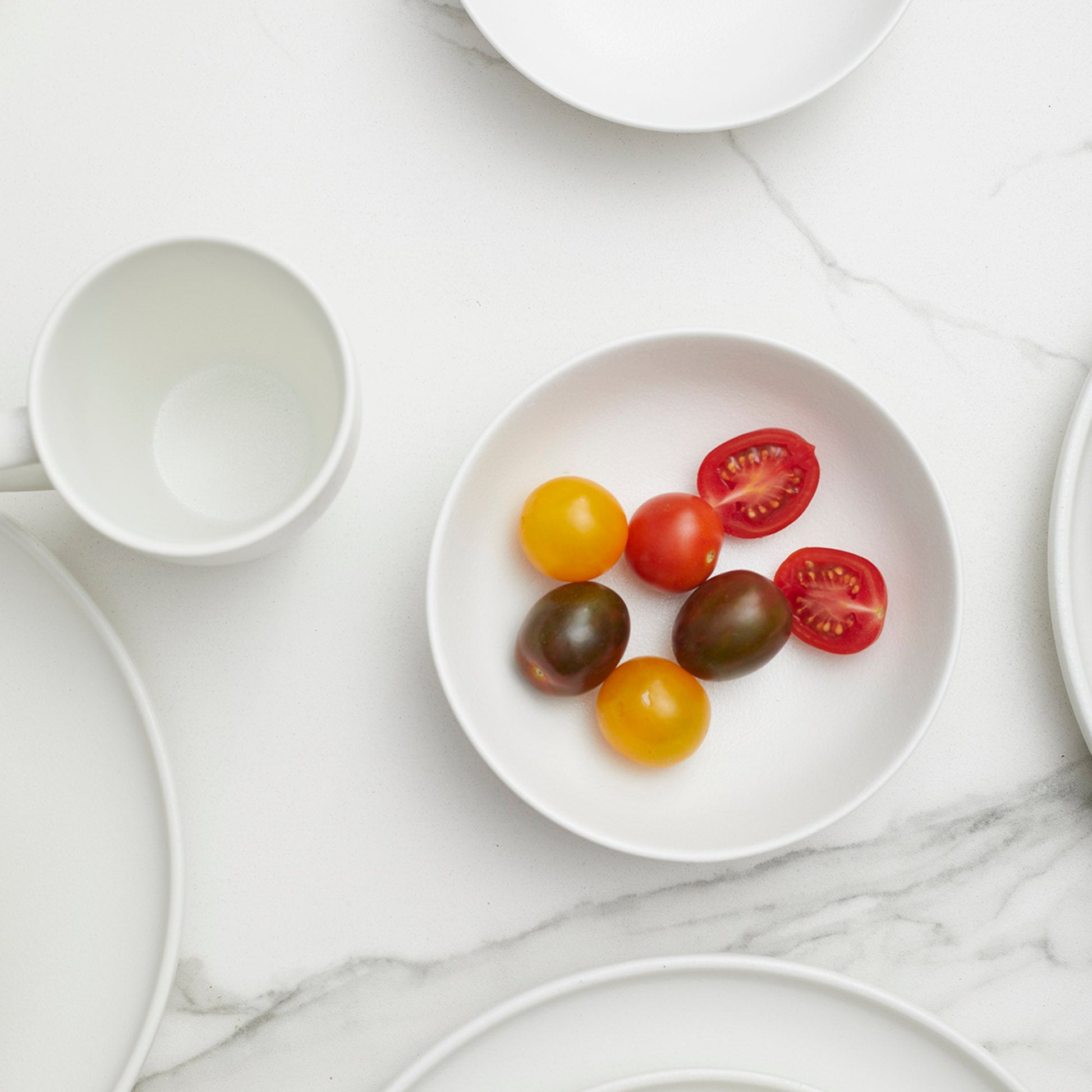 Plato grande Alto 26 mm, Ancho 270 mm, Fondo 270 mm. Plato pequeño Alto 23 mm, Ancho 202 mm, Fondo 202 mm. Plato hondo Alto 46 mm, Ancho 160 mm, Fondo 160 mm. Tazón 400 ml