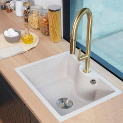 El lavaplatos Deluxe Tunez Small de FDV redefine la zona de lavado con su diseño innovador y materialidad de vanguardia. Fabricado en granito de alta resistencia, este lavaplatos de instalación sobre cubierta no solo aporta un look sofisticado y moderno a tu cocina, sino que también garantiza una durabilidad y funcionalidad excepcionales para el día a día. Disponible en tres colores para que elijas el que mejor se adapte a tu estilo.