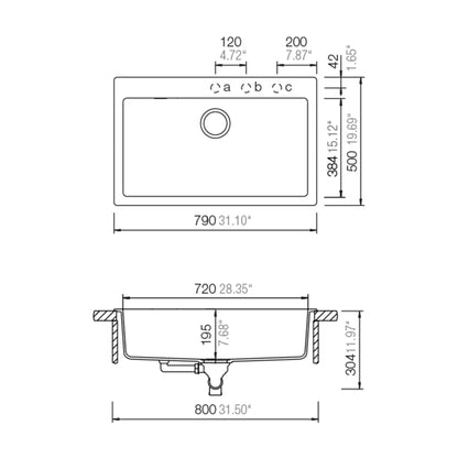 Alto 304 mm, Ancho 790 mm, Fondo 500 mm