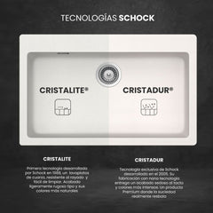 Este lavaplatos está fabricado con la primera tecnología patentada de Schock, desarrollada en 1988. Su composición de 80% cuarzo, ofrece una superficie con textura pétrea y colores de apariencia natural. Es resistente a rayaduras, impactos y altas temperaturas. CRISTALITE® no solo marcó un hito en diseño, sino que también impuso tendencia entre los lavaplatos de su época. Disponible en color Onyx y Alpina.