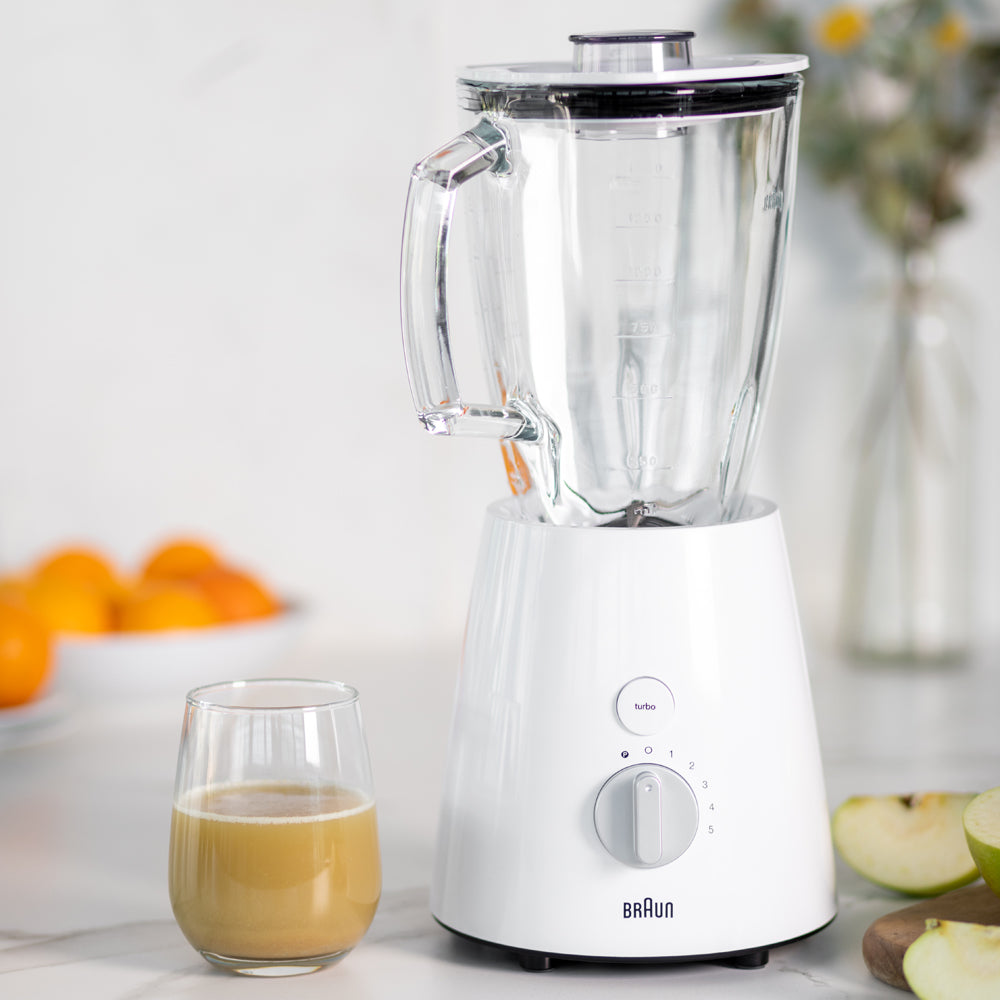Sin dudas, un aliado que debes tener es la Licuadora 41 86-JB3060WHS de Braun. Cuenta con un motor de 800w y función turbo que proporciona ráfagas cortas de máxima potencia para garantizar resultados aún más finos y más control para las recetas. Además, destaca por ser silenciosa y apta para lavavajillas. Su jarra es de 1,75 lts para que hagas todas tus recetas.