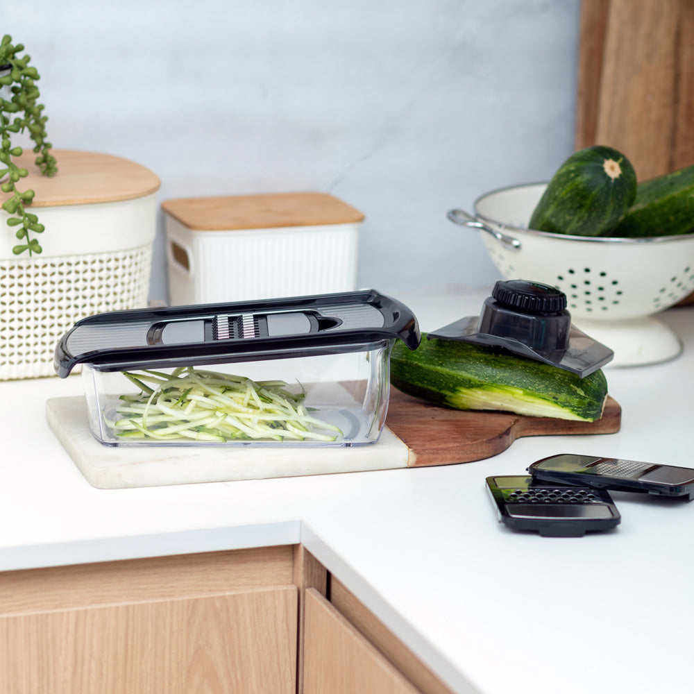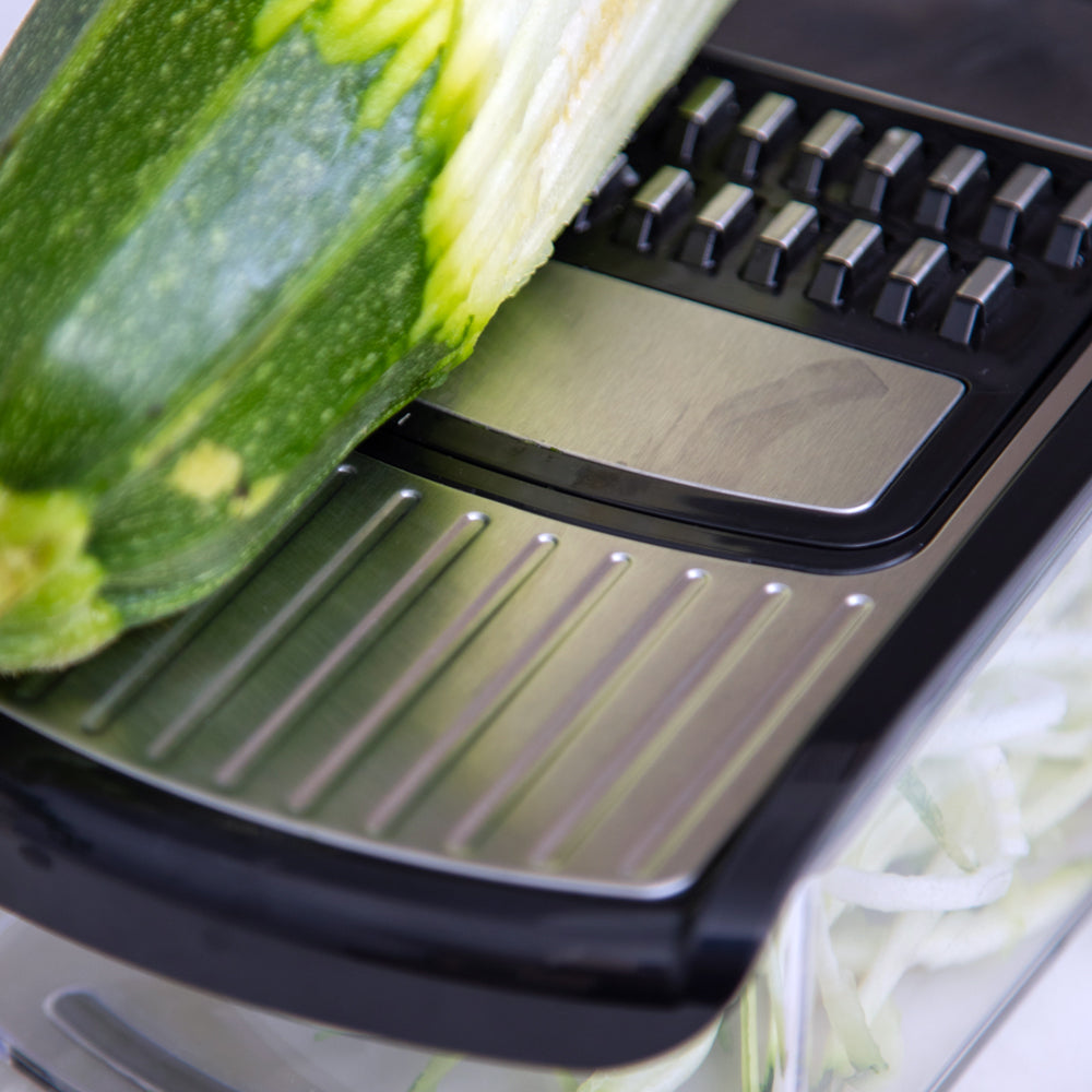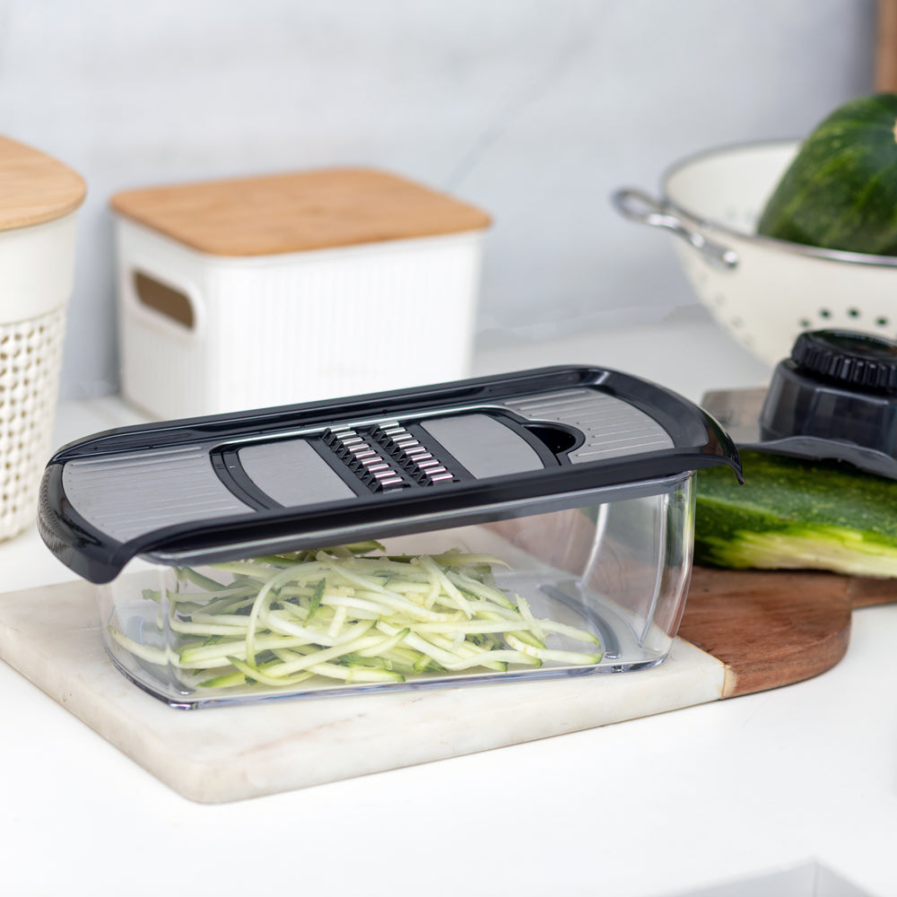 La Mandolina 4 Cuchillas Simple Cook es una herramienta esencial para cualquier cocina, diseñada para facilitar la preparación de alimentos. Incluye cuatro cuchillas intercambiables de acero inoxidable: una cuchilla cortadora recta, una ralladora gruesa, una cuchilla para cortes en juliana y un zester o ralladora fina. Con un bowl de poliestireno de 1.5 litros y una base antideslizante, garantiza estabilidad y seguridad durante su uso. Esta mandolina es perfecta para lograr cortes precisos y uniformes, convirtiendo la cocina en una experiencia más eficiente y creativa.