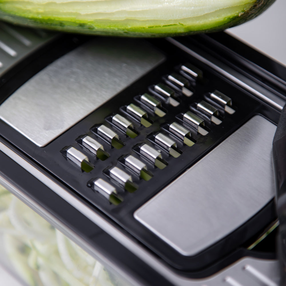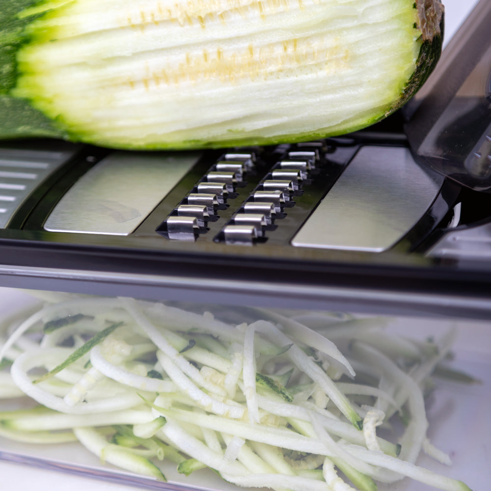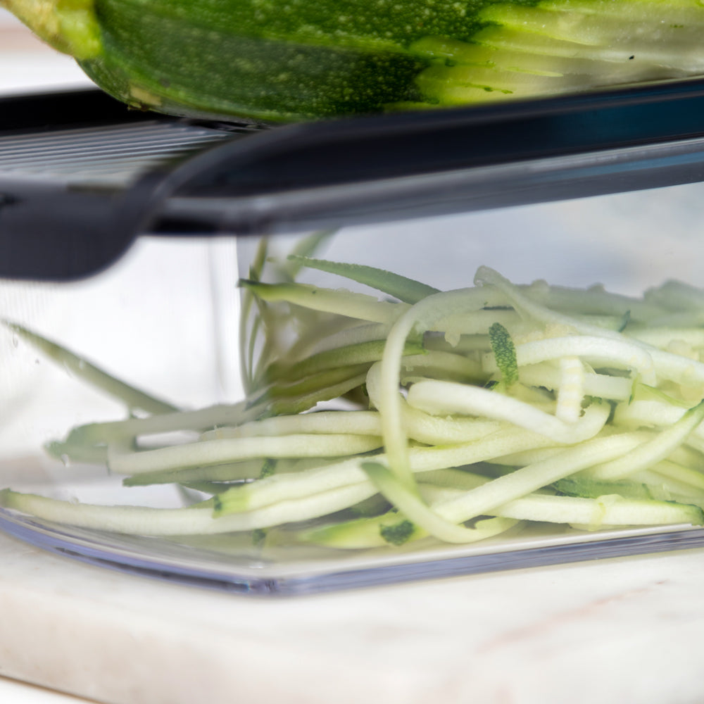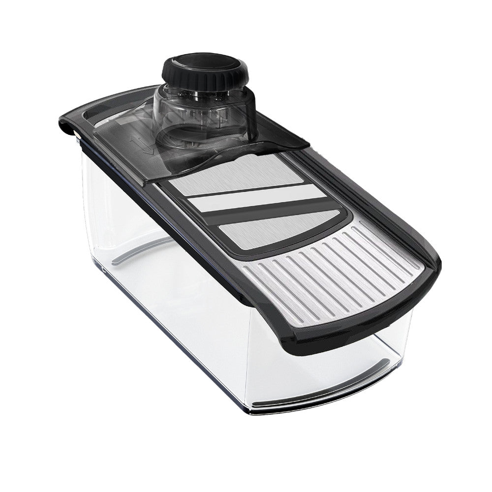 La Mandolina 4 Cuchillas Simple Cook es una herramienta esencial para cualquier cocina, diseñada para facilitar la preparación de alimentos. Incluye cuatro cuchillas intercambiables de acero inoxidable: una cuchilla cortadora recta, una ralladora gruesa, una cuchilla para cortes en juliana y un zester o ralladora fina. Con un bowl de poliestireno de 1.5 litros y una base antideslizante, garantiza estabilidad y seguridad durante su uso. Esta mandolina es perfecta para lograr cortes precisos y uniformes, convirtiendo la cocina en una experiencia más eficiente y creativa.