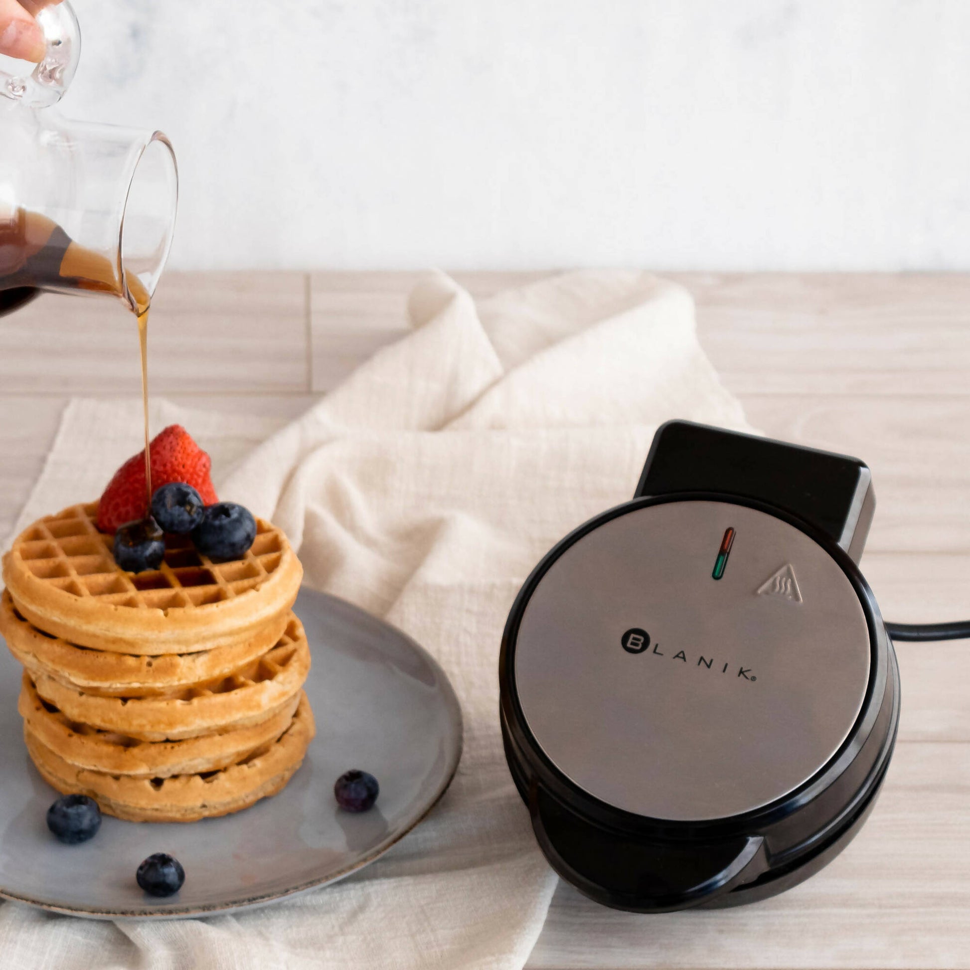 • Características Especiales Waffles esponjosos de 12 cm de diámetro tamaño compacto para un fácil guardado, interior antiadherente para una limpieza sin esfuerzo, y no necesita aceite