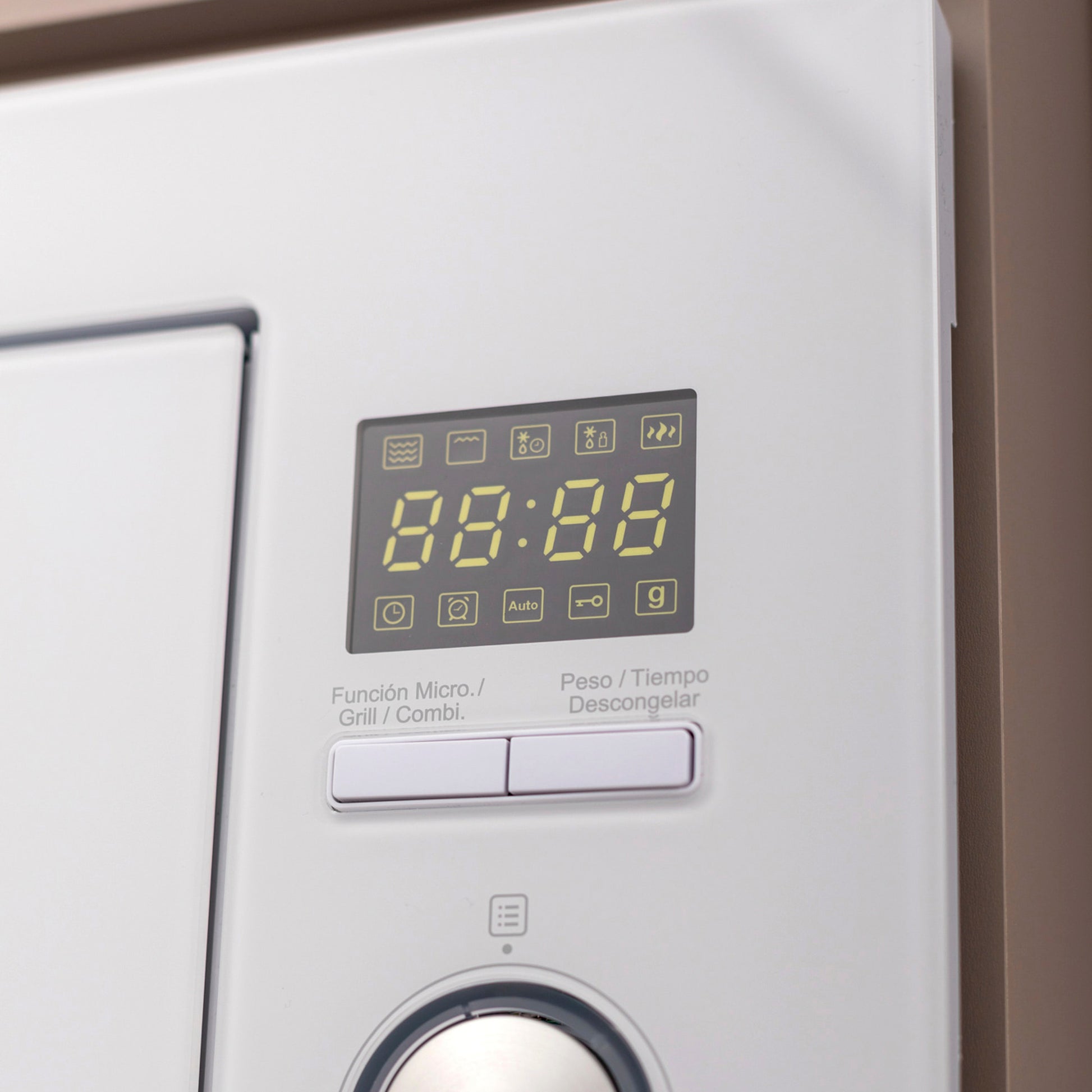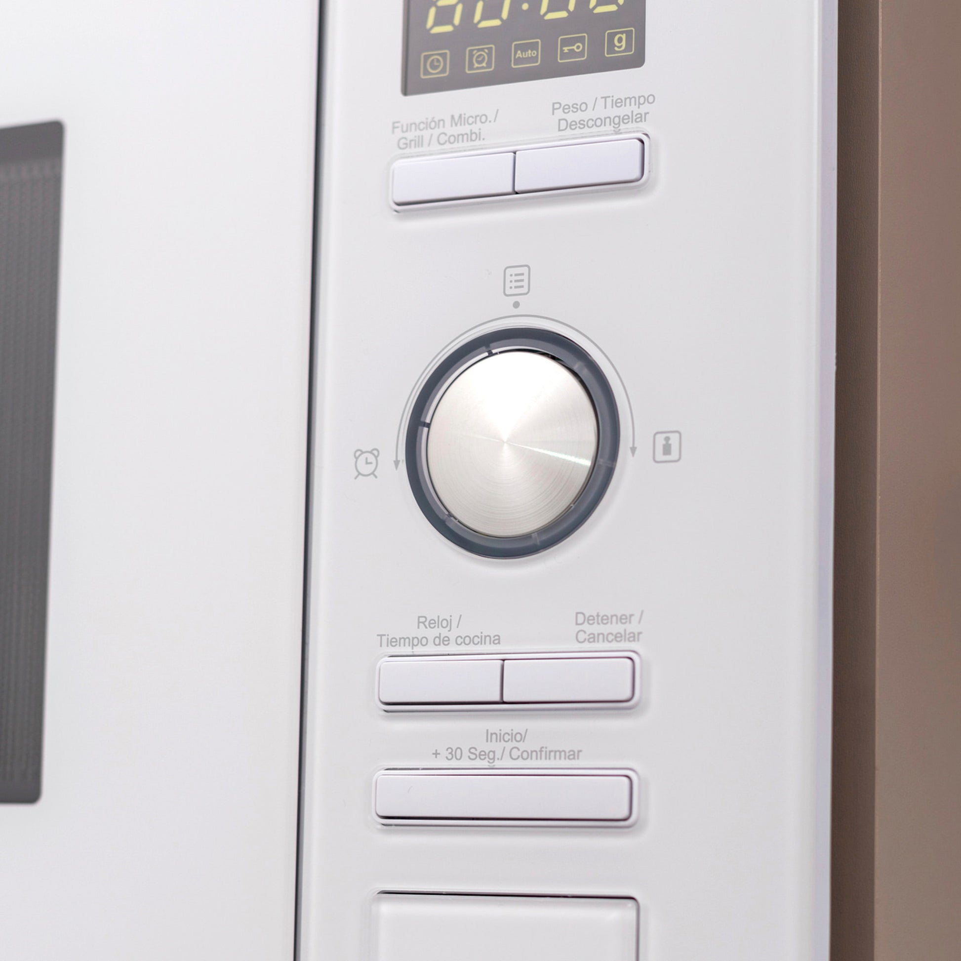 Cuenta con control digital, pantalla LED y funciones prácticas como descongelado por peso o tiempo, además de inicio rápido para calentar tus comidas en segundos. Su interior de acero inoxidable asegura mayor durabilidad y fácil limpieza, ideal para el uso diario.