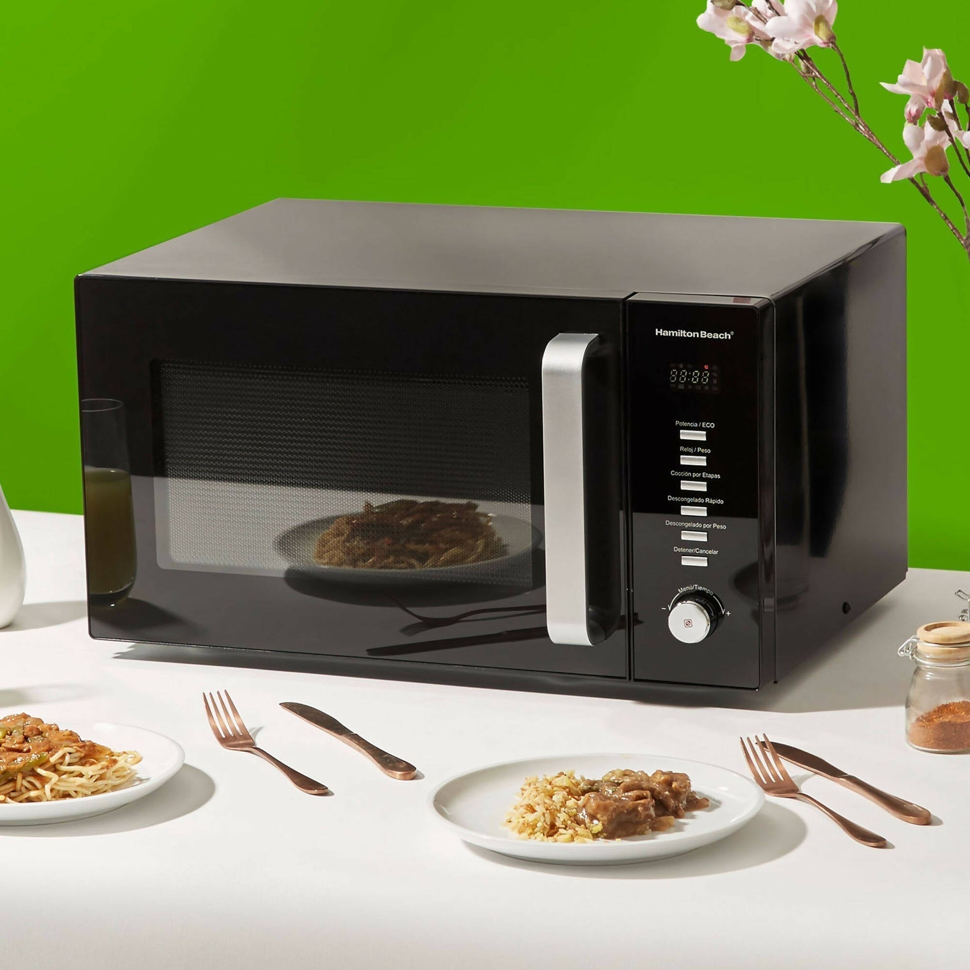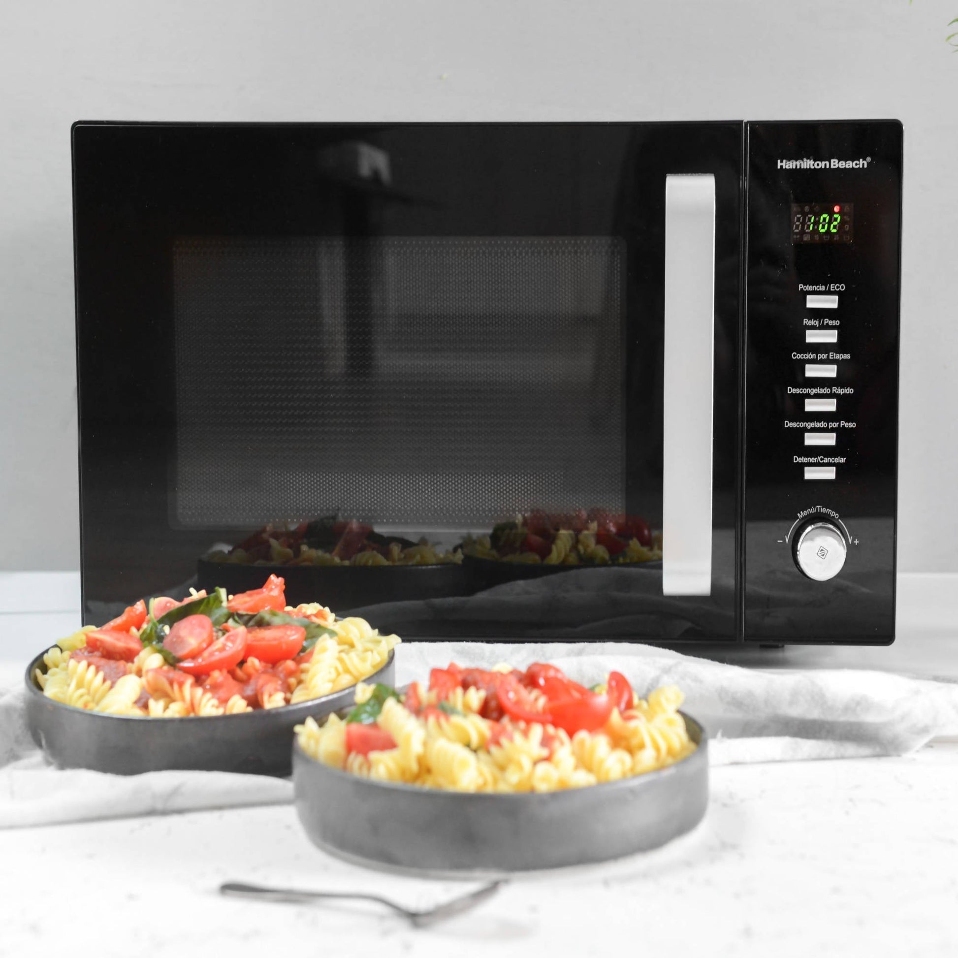 Los nuevos hornos microondas Hamilton Beach cuentan con toda la calidad y la experiencia de más de 100 años creando soluciones para el día a día. Con su gran tamaño de 30 L y variadas funciones, podrás cocinar todos tus platos favoritos. Cuenta con 900 Watts de potencia, 8 funciones de cocción pre-programadas y cuenta con un interior hecho con tecnología antiadherente nanocoating para una fácil limpieza.
