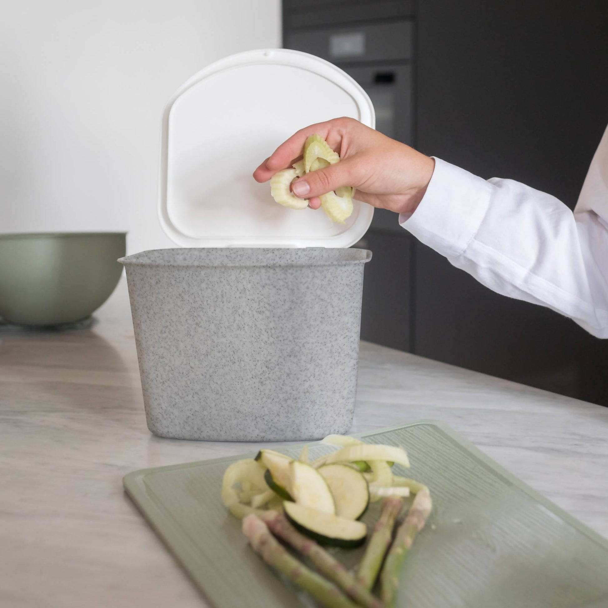Cubo Basura Orgánico "Mini Compostera"Este cubo es perfecto para guardar los residuos orgánicos en la cocina antes de llevarlos a la compostera. Con sus dimensiones compactas este modelo es ideal para espacios más pequeños. Además, es fácil de limpiar y, gracias a su tapa ajustada, sella el contenido herméticamente para mantener la higiene de tu cocina.