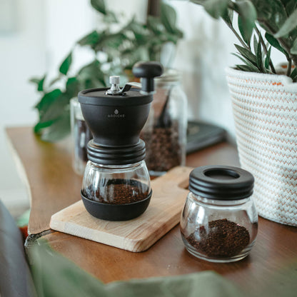 Cada molinillo viene con un frasco y una tapa adicionales para almacenar el molido
