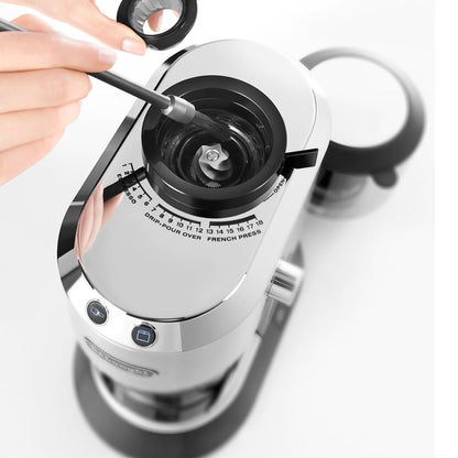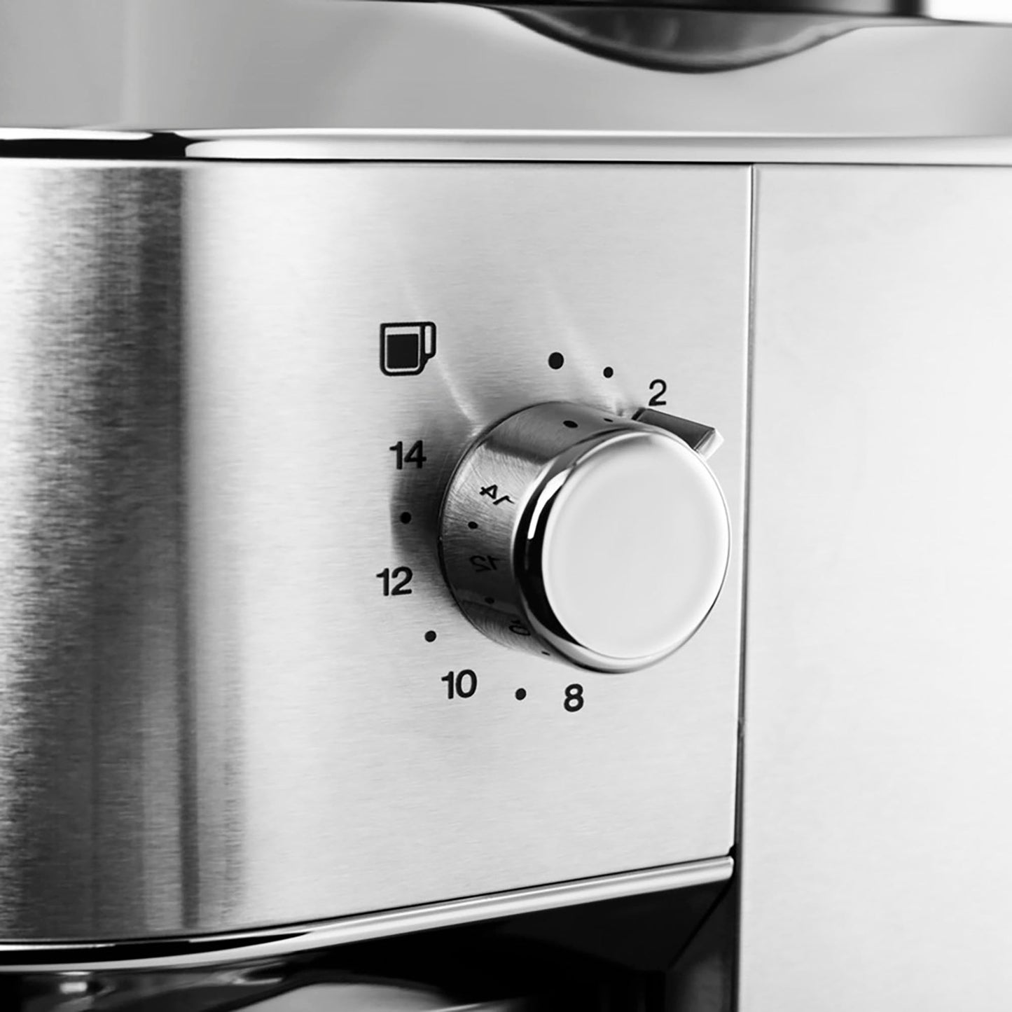 • Características Especiales Mecanismo para moler: Cepillo cónico tamaño de triturado ajustable: De 1 a 18 , selector de tazas , contenedor de café molido extraíble, cepillos extraíbles, y capacidad depósito granos 350 grs