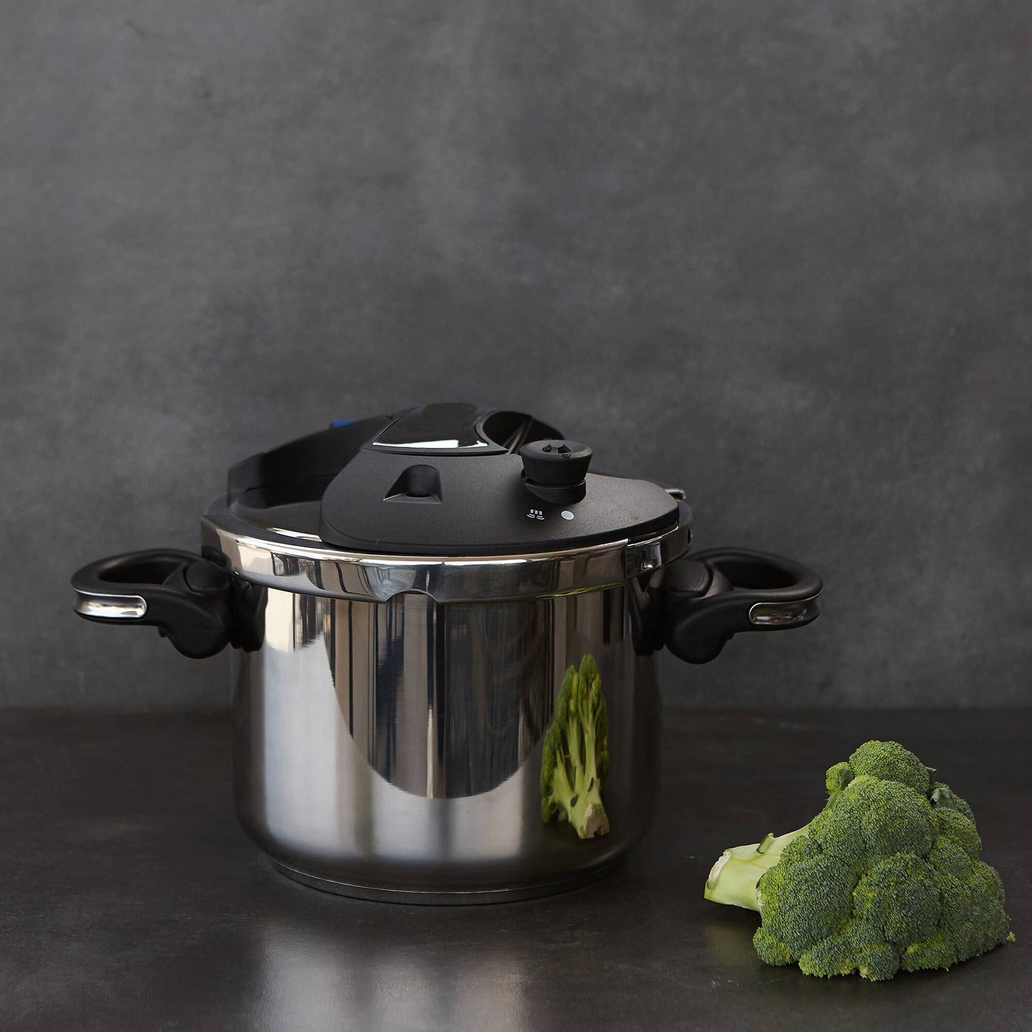 • Características Especiales Tapa con indicador de nivel de presión Mango plegable, y Base con doble capa