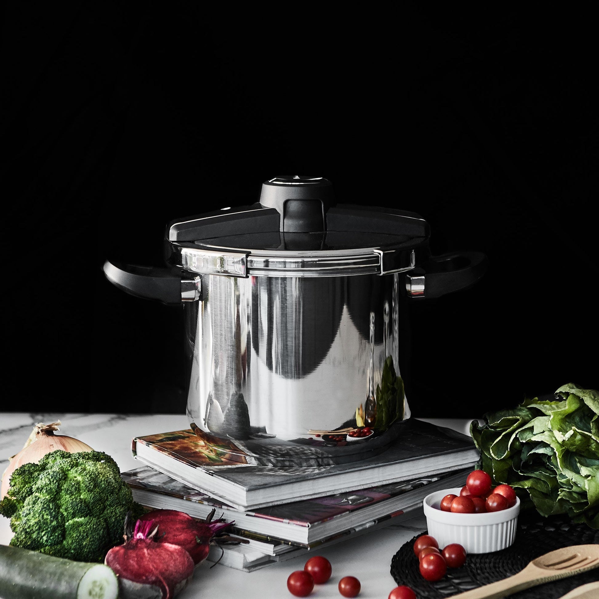 La olla a presión Toulouse de SimpleCook es uno de nuestros mejores modelos, cuenta con 7 litros de capacidad, tiene un cuerpo y tapa fabricados de acero inoxidable. Cuenta con un triple mecanismo de seguridad que evita el exceso de presión acumulada, un regulador de vapor en 3 niveles y sus mangas son elaboradas de bakelita (plástico ultra resistente a altas temperaturas). Su base cuenta con tecnología impact bounding, que logra una distribución de calor más homogénea. En cuanto a seguridad, incluye un mecanismo de doble pinza con cierre automático y válvula de trabajo por gravedad (ajustes de baja y alta presión) lo que la hace más duradera y segura.
