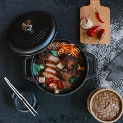 Nuestro olla de hierro fundido u horno holandés Victoria, es el utensilio ideal para cocinar a fuego lento. Perfecto para estofados, arroz, pollo marinado, pan horneado y mucho más. Este horno holandés se ha convertido en el preferido por muchos cocineros por su gran capacidad de distribuir y retener el calor uniformemente y por más tiempo, dándole un toque único a cada preparación. Sus tapas tienen protuberancias, o puntos y su función es devolver la humedad a toda el área de cocción de forma homogénea, rociándolas continuamente con los deliciosos jugos sin desperdiciar ni una gota de sabor.