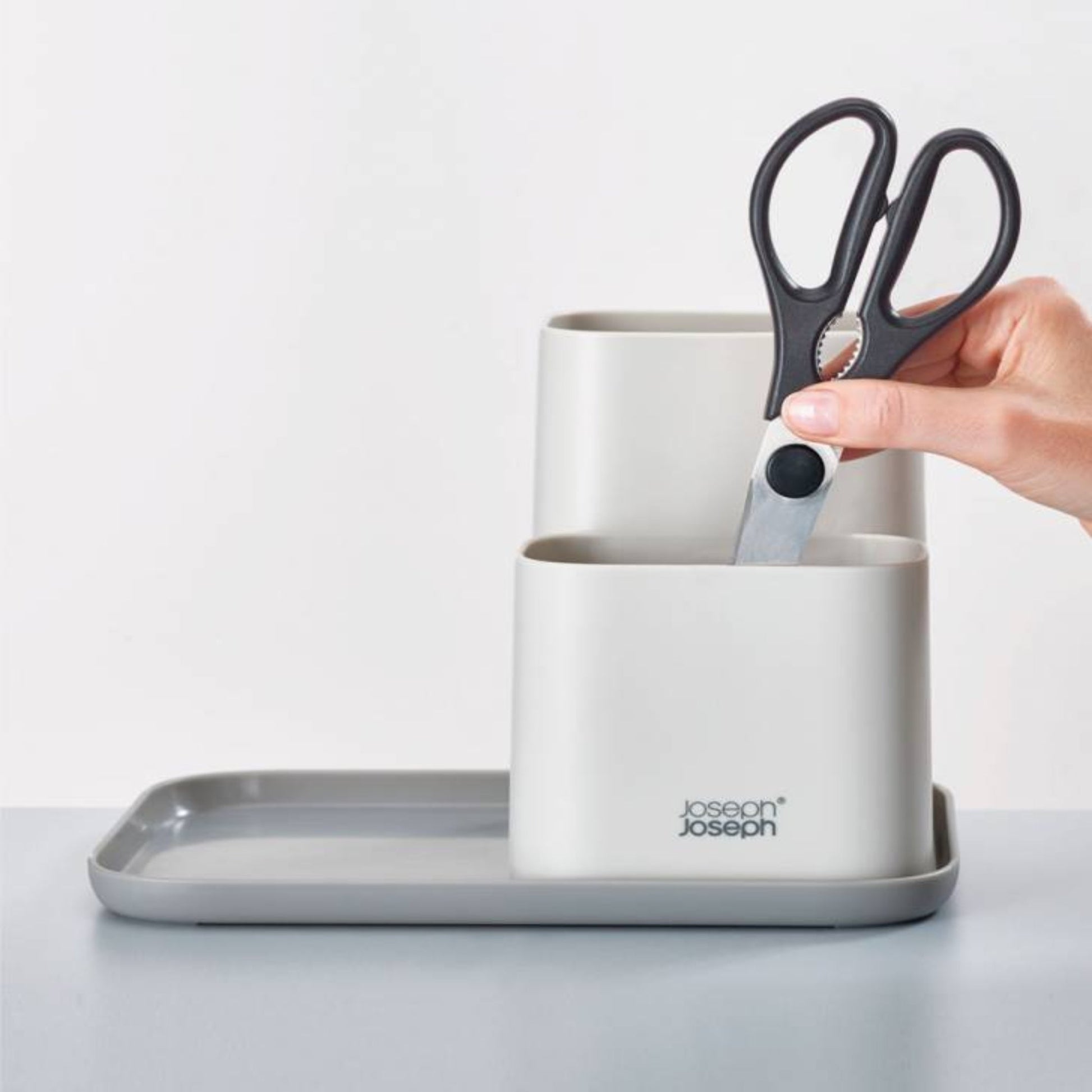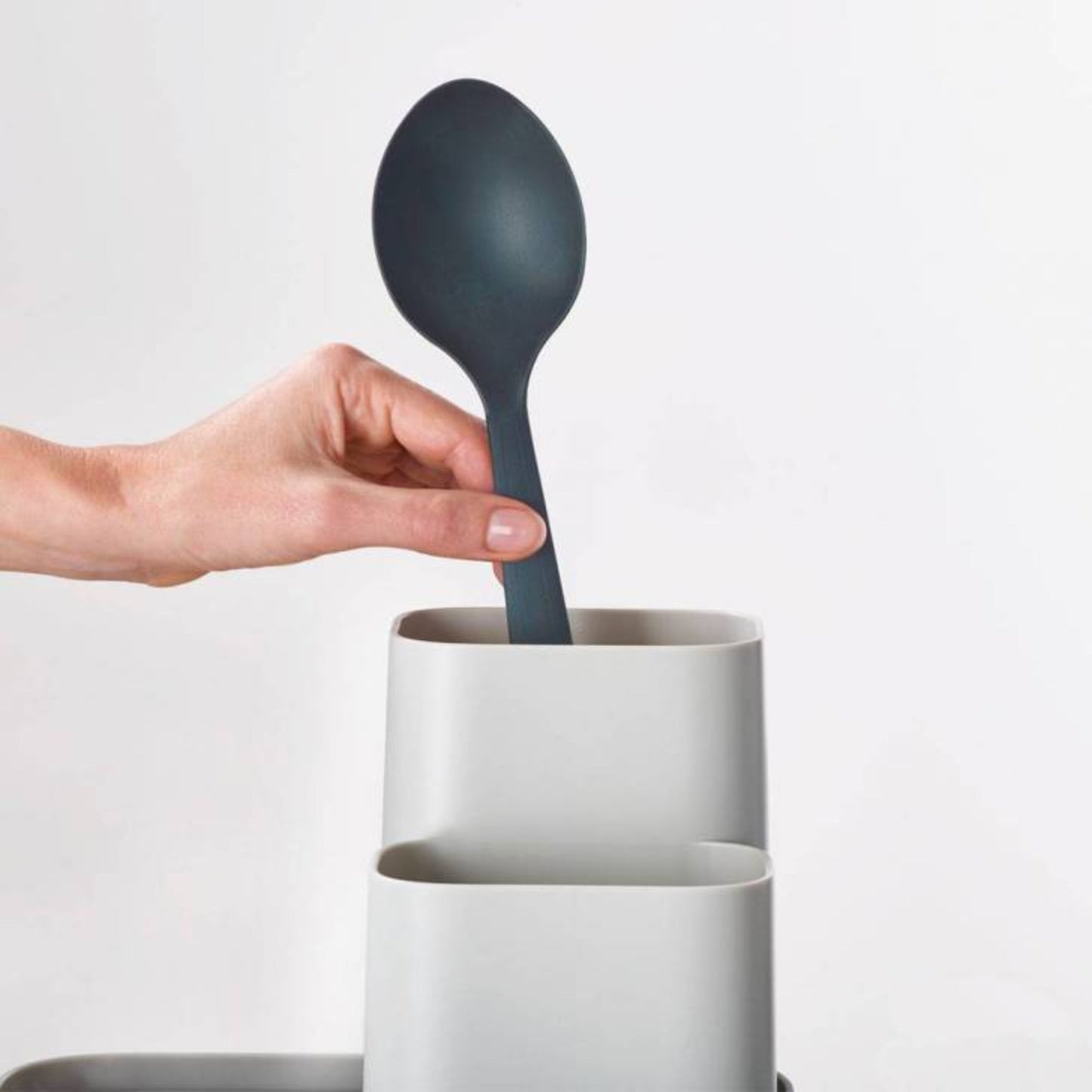 Optimiza tu espacio y mantén tus utensilios ordenados con el Organizador de Utensilios Duo de Joseph Joseph. Con dos compartimentos separados, puedes guardar una variedad de utensilios de cocina, desde espátulas hasta abridores, de manera organizada y accesible. La bandeja adicional es ideal para almacenar aceites, sales y condimentos, manteniéndolos al alcance de la mano. Además, su diseño permite separar el organizador para una limpieza fácil y rápida, asegurando que tu cocina esté siempre impecable.