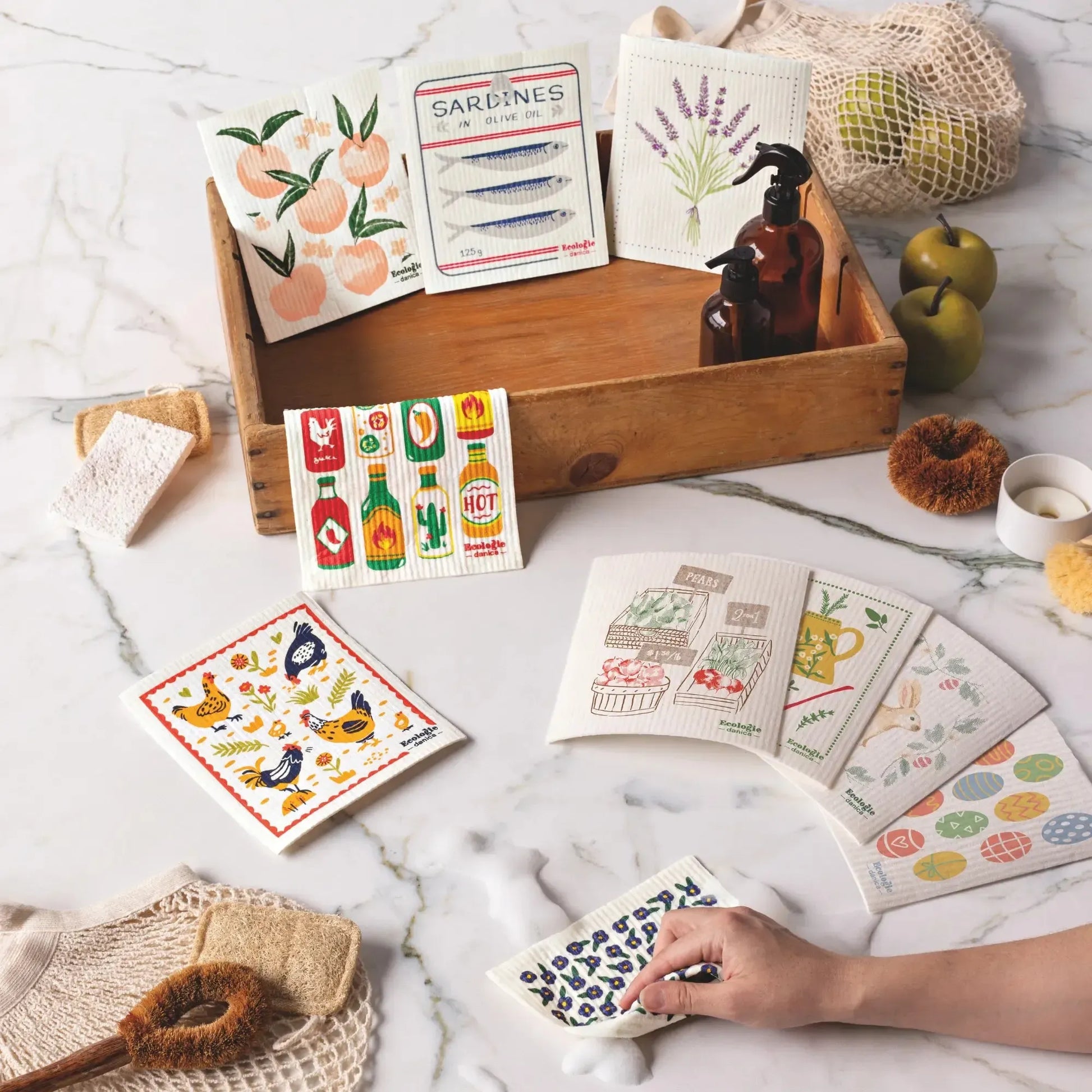 Paño Esponja Compostable Sardinas Danica combina estilo marinero y sostenibilidad para tu cocina. Elaborado con 70% celulosa vegetal y 30% algodón, es completamente compostable y una alternativa ecológica a esponjas, paños y toallas de papel. Su diseño inspirado en el mar, con coloridas sardinas, añade encanto y frescura a tu hogar. Al mojarse, se vuelve suave y flexible, facilitando la limpieza de platos, encimeras o grifería. Reutilizable y lavable más de 200 veces, es superabsorbente, versátil y seguro con diversos productos de limpieza, ideal para quienes buscan reducir residuos sin sacrificar estilo ni practicidad.