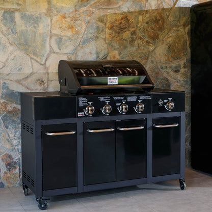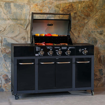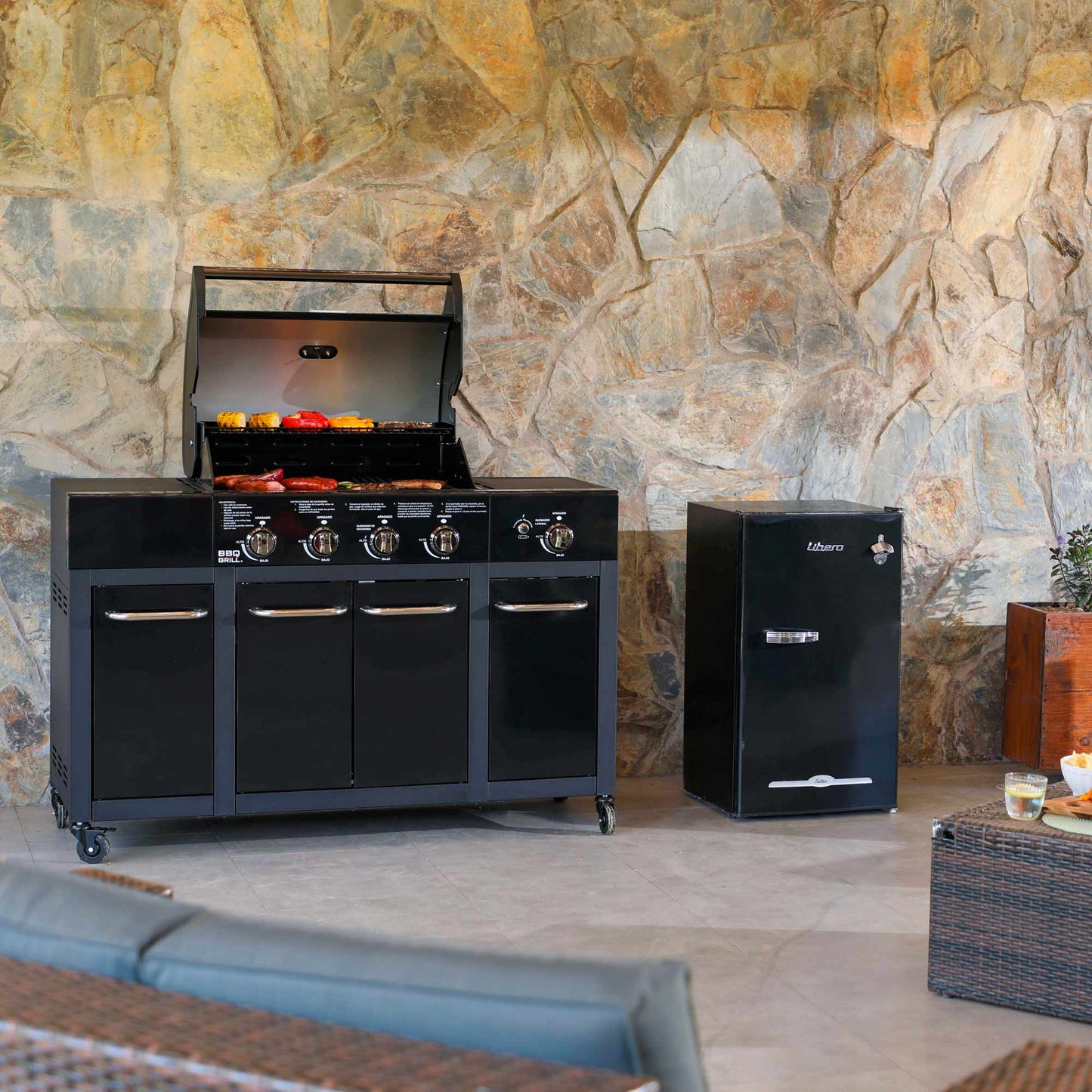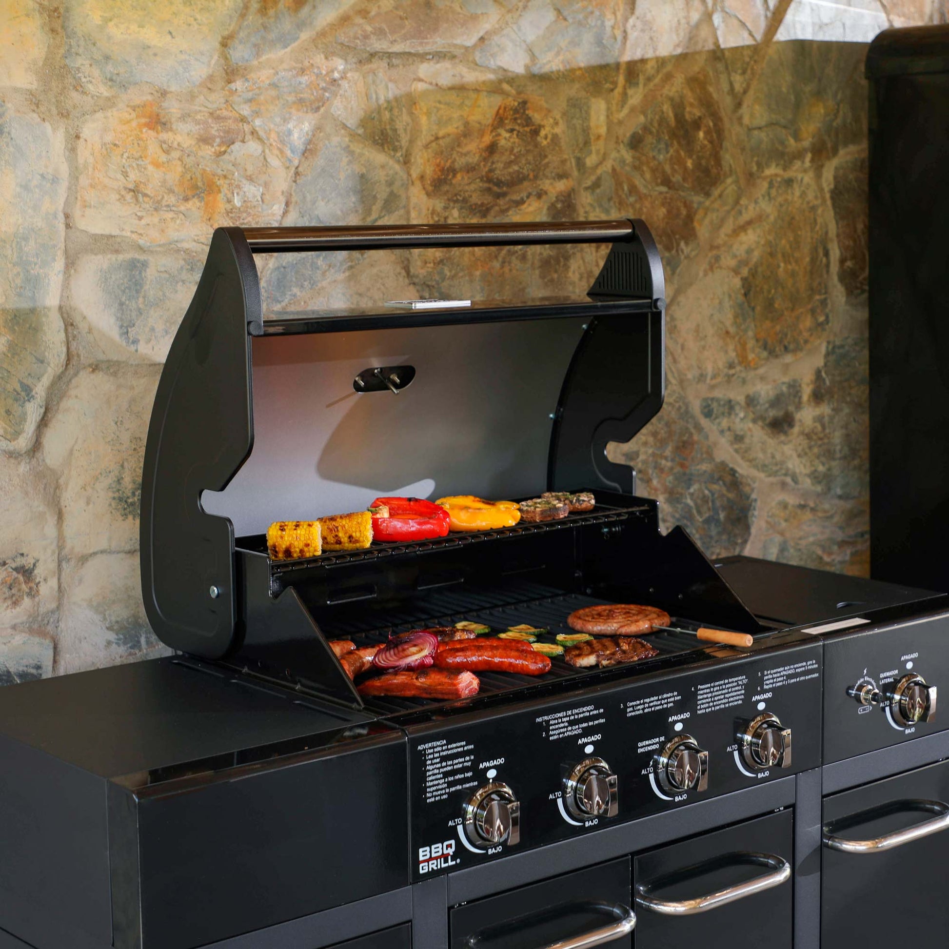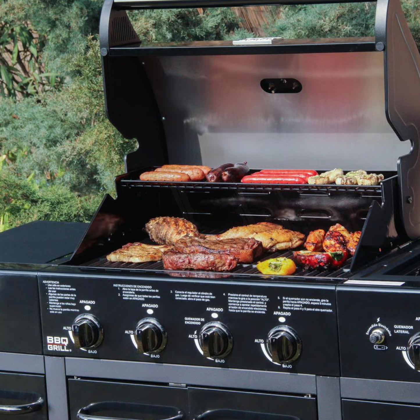 Eleva tus reuniones al aire libre con la Parrilla Buffalo Black De 4 Quemadores BBQ401GCQLMBLACK de BBQ Grill, la elección perfecta para quienes valoran la elegancia y la funcionalidad en sus encuentros. Este modelo no solo te permite preparar asados con estilo, sino que también ofrece comodidad y clase con su diseño estilo mueble y estanterías laterales para una organización óptima. Ideal para los amantes de las invitaciones y reuniones en casa, su amplio espacio de cocción asegura que siempre tendrás lugar para más. Incluye una funda para protegerla, garantizando que tu parrilla se mantenga como nueva. No dejes pasar la oportunidad de crear momentos inolvidables con tus seres queridos. Adquiere tu Parrilla Buffalo Black y convierte cada asado en una experiencia de lujo y comodidad.