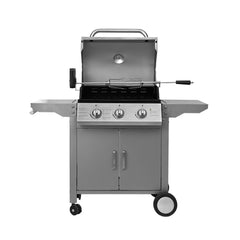 La parrilla a gas de acero inoxidable FDV es lo que necesitas para salir triunfante en cada asado. Una parrilla a gas 3 quemadores que cuenta con encendido eléctrico, termostato, 2 Parrillas independientes y 1 Parrilla pequeña superior.