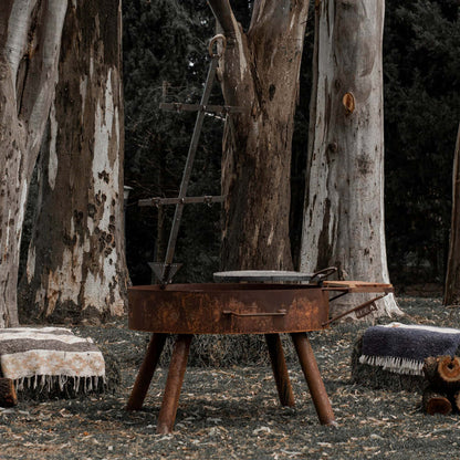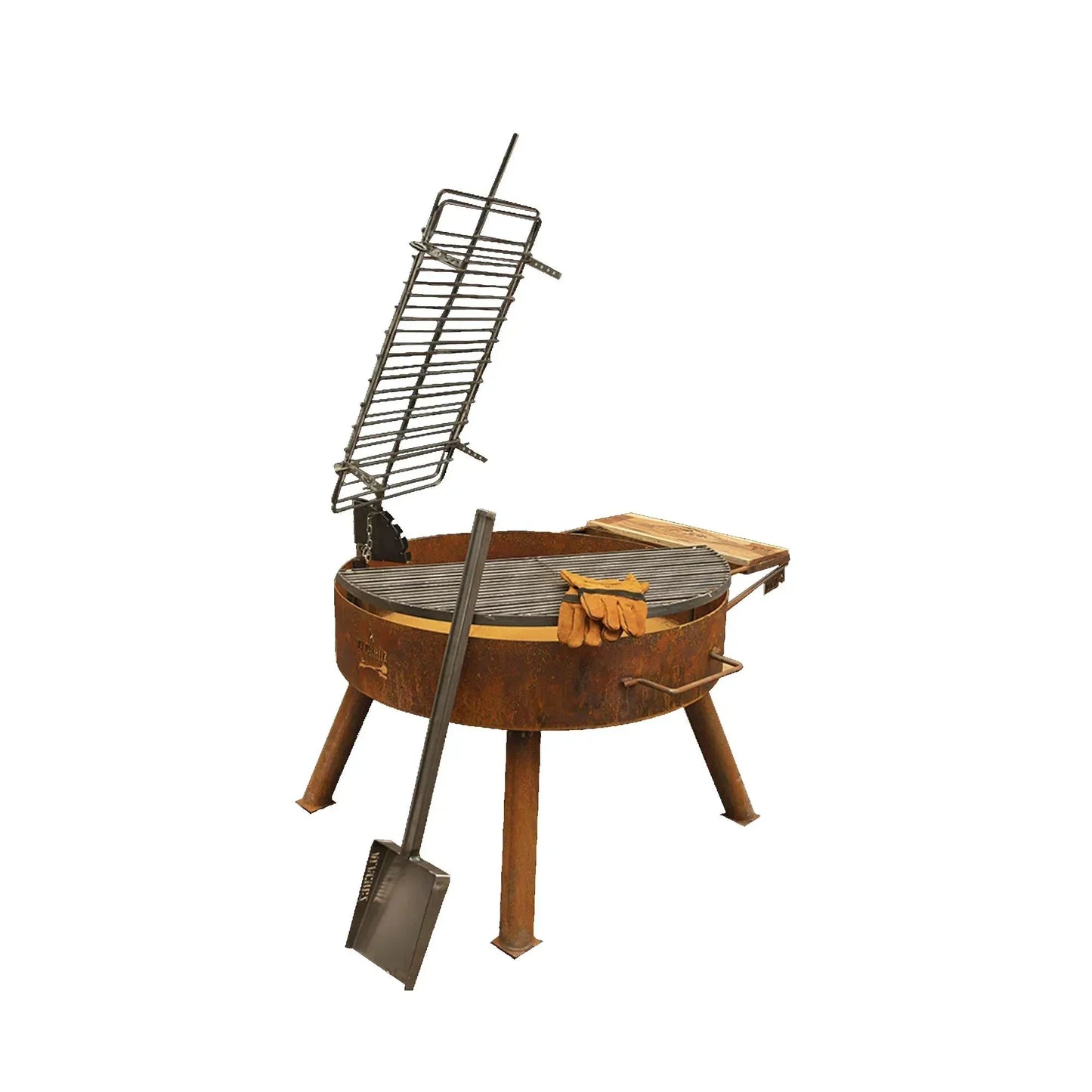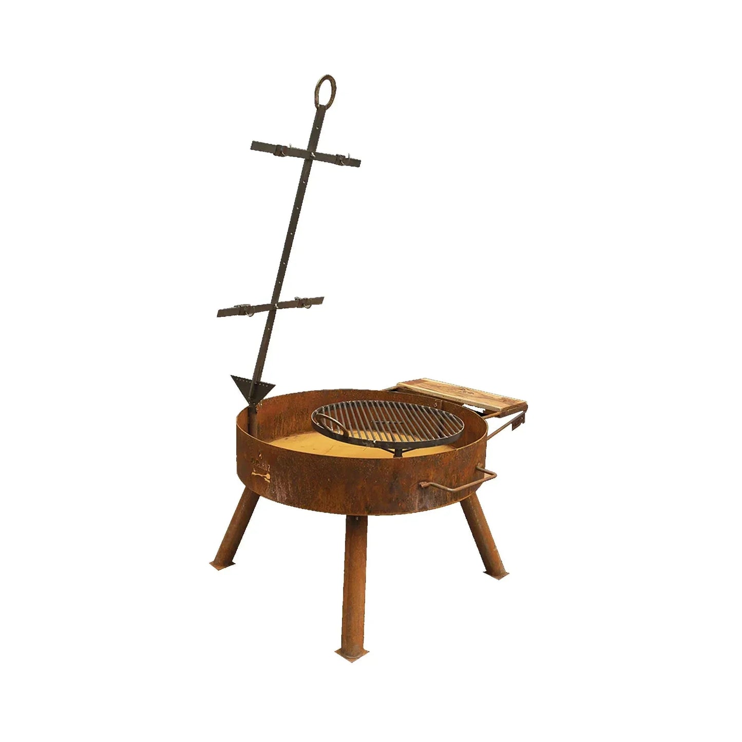 Este asador está lleno de historia y te ayudará a crear muchos buenos recuerdos en torno al fuego. Está montado sobre cuatro patas, las que son fácilmente desmontables, y que te permite transportarlo a donde quieras. En el logotipo del soporte de la tabla de quebracho, está incorporado un siempre útil destapador de botellas. Además incluye una cruz de asado, una parrilla circular, y es compatible con todos los otros accesorios parrilleros de Alacruz. Es el más clásico de todos y el que no debe faltar.