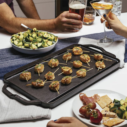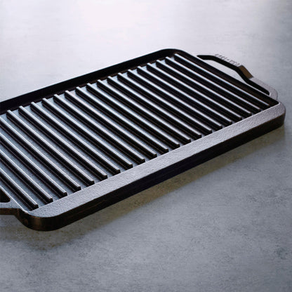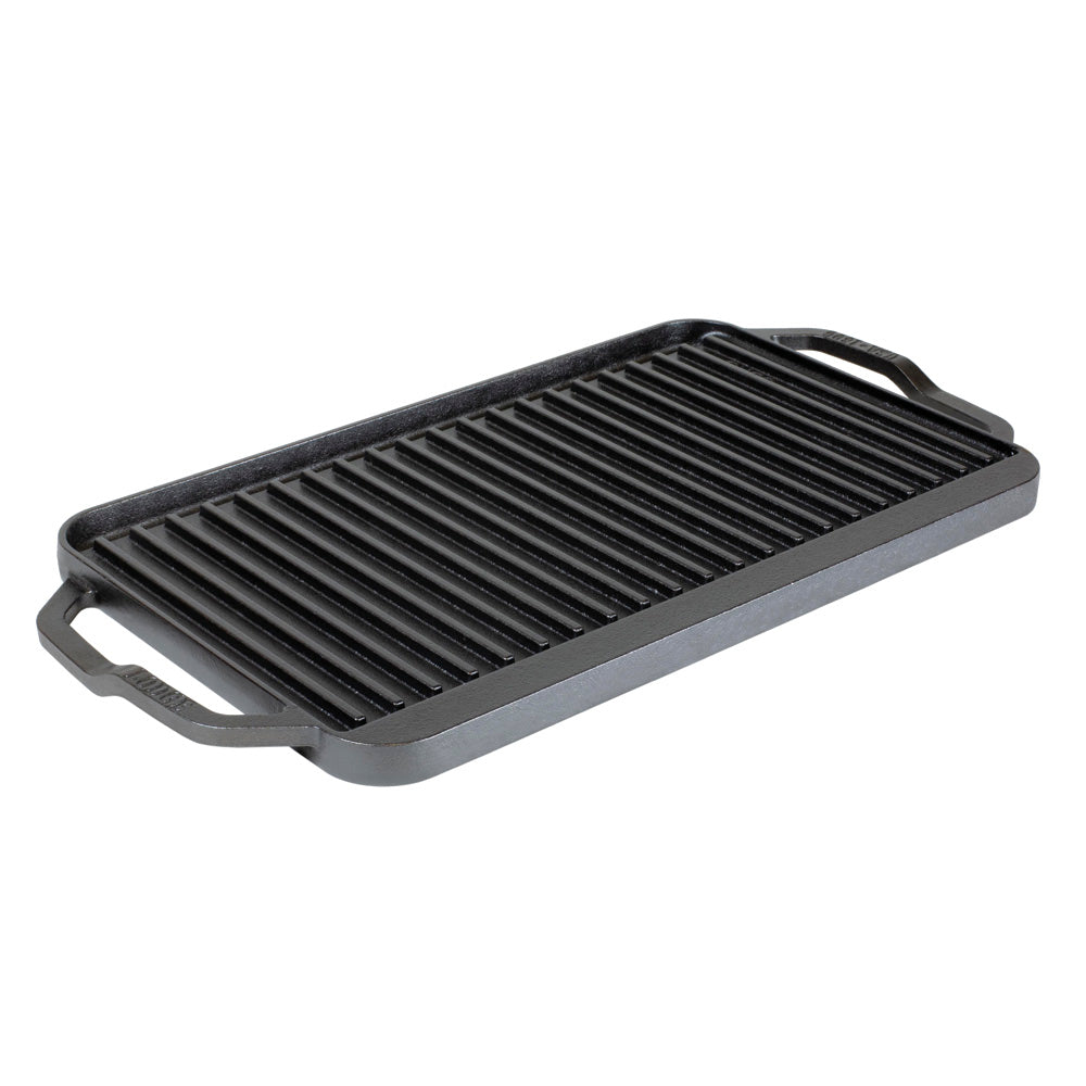 La Parrilla/Plancha Reversible de Hierro Fundido de la Colección Chef de Lodge Cast Iron ofrece una excepcional retención y distribución del calor, perfecta para adaptarse a dos quemadores de estufa. Diseñada con asas elevadas para un agarre ergonómico y un control óptimo, sin importar qué lado estés usando. Cada lado cuenta con una bandeja de goteo para atrapar la grasa, manteniendo la comida magra y sabrosa. Su amplia superficie es ideal para panqueques, huevos, pollo y bistec. Sazonada para realzar los sabores, esta parrilla/plancha reversible promete ser una favorita durante años.