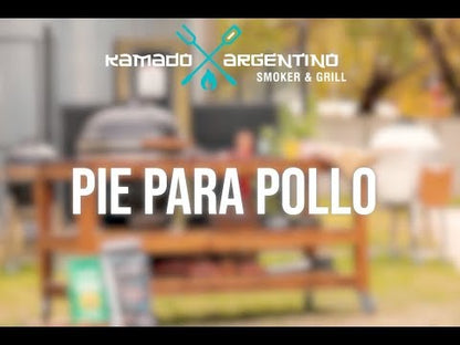 Muy fácil de usar. Dentro del pie se colocan los líquidos que van a hidratar al pollo, el cual se coloca en forma vertical sobre dicho pie. Luego se coloca sobre la parrilla de tu Kamado, a fuego directo o indirecto, dependiendo del tipo de cocción que se desee. Es compatible con los modelos Kamado Argentino Gran Asador Criollo, Asador Criollo, Asador Porteño, Asador Pampero y Mini Pampero