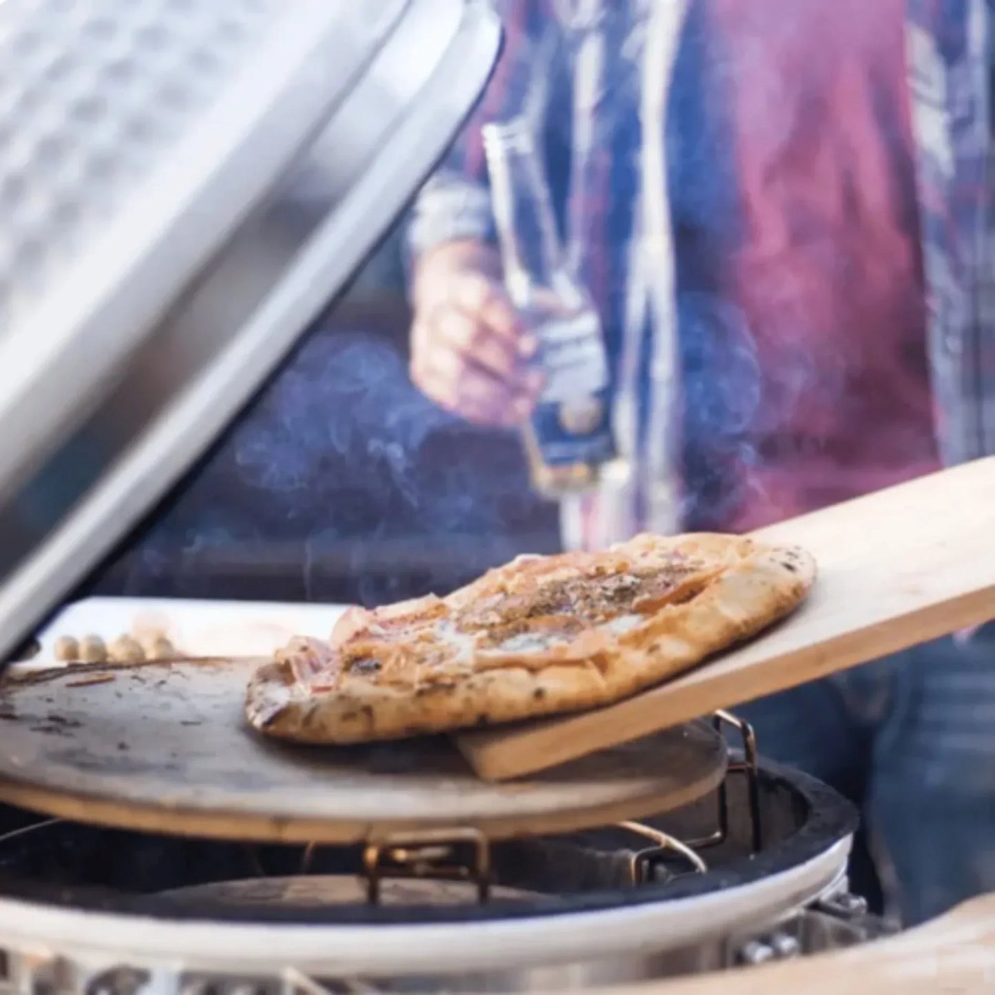 Se utiliza principalmente para dos propósitos: 1.Cocción directa, donde la piedra se coloca sobre la parrilla, tomando la temperatura directo de la brasa y encima se colocan los distintos alimentos a cocinar sobre la piedra, tal como pizza, empanadas, pan, etc. 2. Y se utilizar también para mejorar la distribución del calor: La piedra refractaria se coloca debajo de la parrilla y ayuda a distribuir el calor de manera uniforme en la parrilla kamado, lo que permite cocinar los alimentos de manera más consistente y evita que se quemen en algunas áreas.