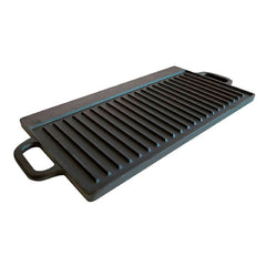 Esta plancha tiene una excelente retención y distribución del calor. Manillas de hierro curvado en ambos costados. Para uso en parrillas, superficie estufas/cocinas a leña y sobre fogata de camping. Ideal para dorar, saltear, freír y asar a la parrilla. Lavar a mano.