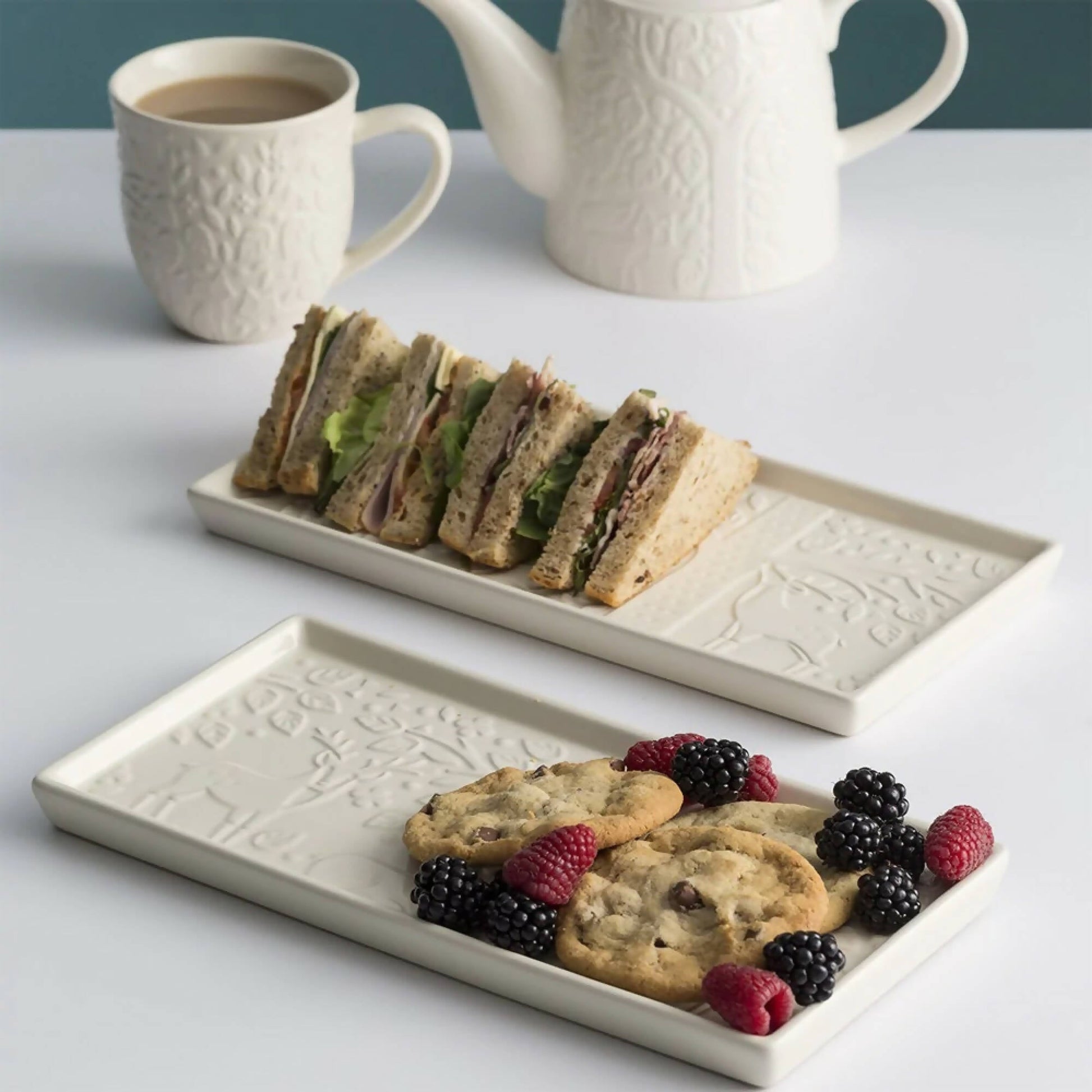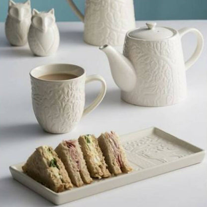 La línea Mason Cash In the Forest está intrincadamente grabada con escenas del bosque inspiradas en cuentos populares de mediados del siglo XIX. Este plato de 30 cm tiene un diseño elevado, lo que hace que los alimentos, como el queso o pancitos, sean más fáciles de escoger. Puede ser usado para picoteos, para la hora del té o lucir galletas o pasteles.