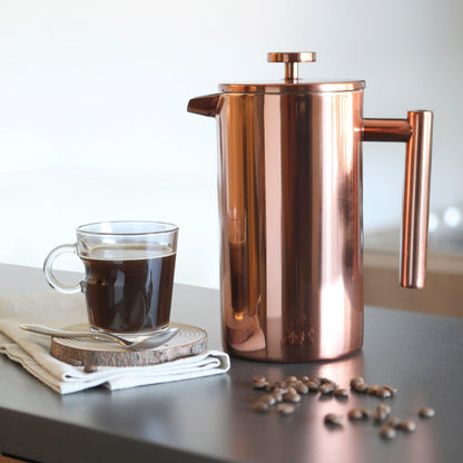 La cafetera prensa francesa Bolonia de Simple Cook, es la herramienta perfecta para preparar café de la más alta calidad. Con su diseño moderno y elegante, esta prensa francesa es una excelente adición a cualquier cocina. Fabricada con acero inoxidable de primera calidad la hace resistente y duradera, además de fácil de limpiar. El filtro de malla fina se ajusta perfectamente a la prensa francesa, permitiendo una filtración de café perfecta. Una cafetera de prensa francesa es perfecta para una preparación de café más suave. El proceso tarda 4-5 minutos y es ideal para quienes disfrutan un café artesanal, con un molido más grueso que una cafetera de tipo italiana. No apto para lavavajillas.