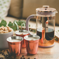 Cafetera de prensa Francesa, al actuar directamente con los granos de café, permite extraer muy bien los sabores, lo que nos da la posibilidad de disfrutar un exquisito café día a día. Modo de Uso: Añadir café de grano molido grueso de preferencia a la cafetera. Verter agua caliente (No recién hervida) a la cafetera. Colocar la tapa a la cafetera y esperar unos minutos. Presionar suavemente embolo hacia abajo. Disfruta de un rico café.