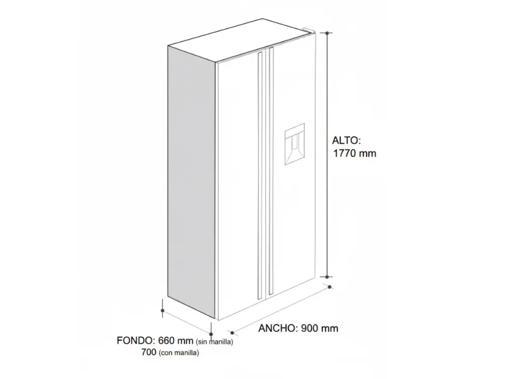 • Medidas Producto Alto 1770 mm, Ancho 900 mm, Fondo 660 mm