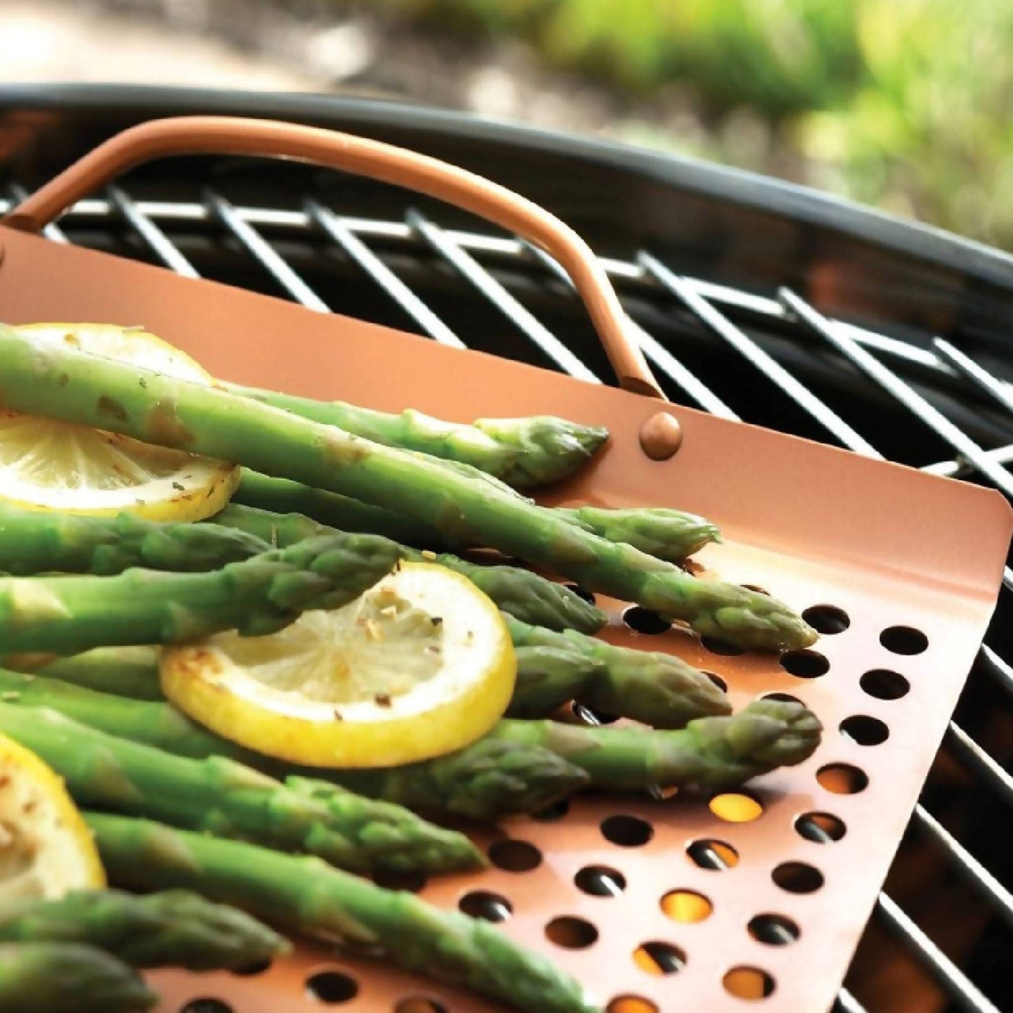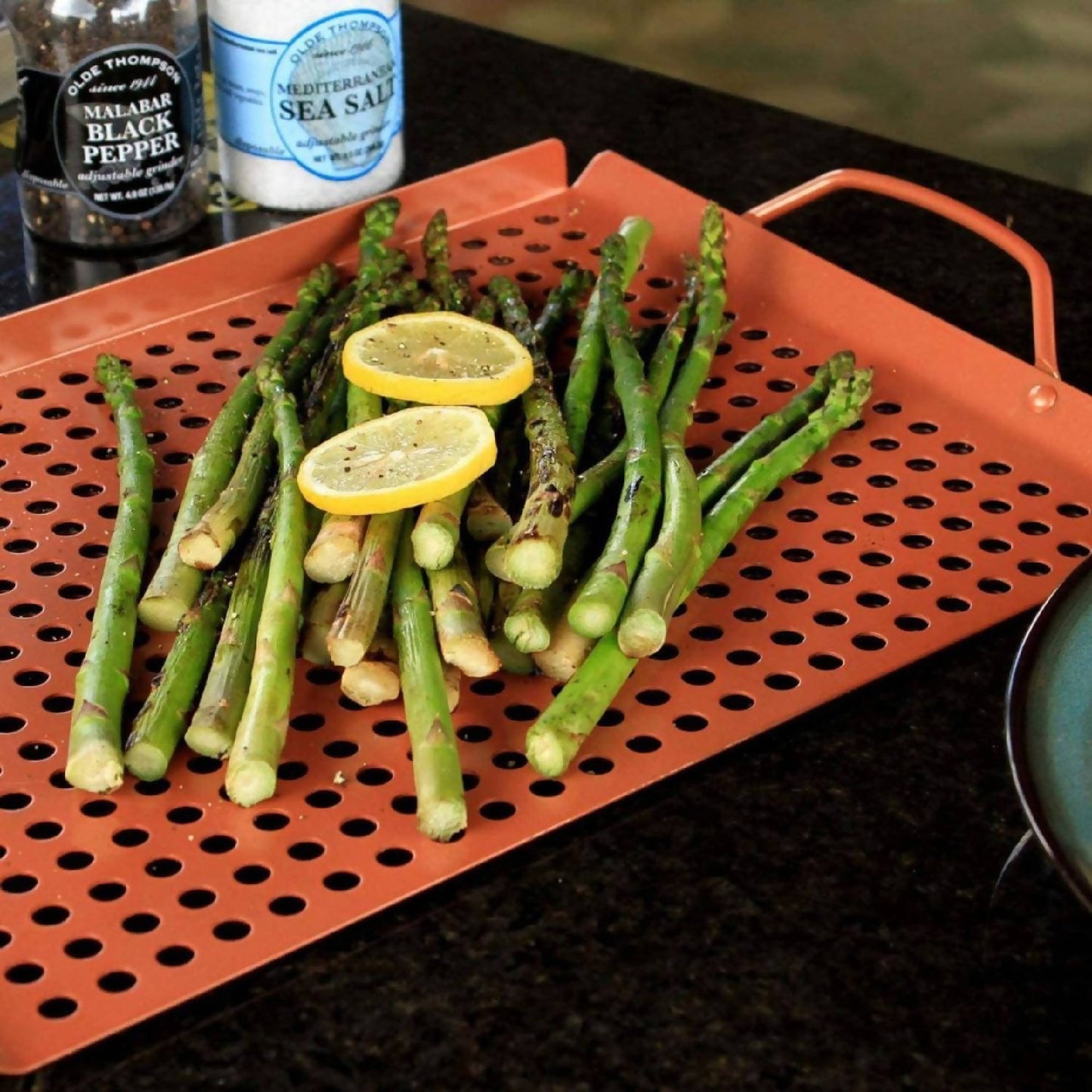 ¿Estás buscando lo mejor en parrilla? Para una cocción segura y una limpieza fácil, prueba esta parrilla con cortes más pequeños de pescado, carnes y verduras. También está diseñada para soportar temperaturas extremas del calor y las llamas. El diseño perforado drena el exceso de jugo, grasa o grasa mientras permite que las llamas y el humo infundan la comida con el sabor ahumado a la parrilla que anhelan sus clientes. Cuenta con un recubrimiento antiadherente premium de doble capa, a base de silicona, libre de PTFE y PFOA para una cocción segura y sin complicaciones.