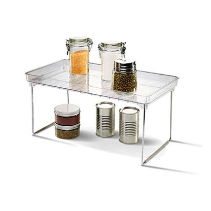 El estante apilable mediano Madesmart® maximiza el espacio de almacenamiento vertical no utilizado. El plástico transparente de alta calidad se combina con cualquier decoración y mantiene tus elementos esenciales visibles, mientras que las patas de goma antideslizantes evitan que se resbalen. El estante soporta hasta 11 Kgs y se pliega para guardarlo cuando no está en uso. Hecho de plástico de alta calidad sin BPA para una organización duradera.