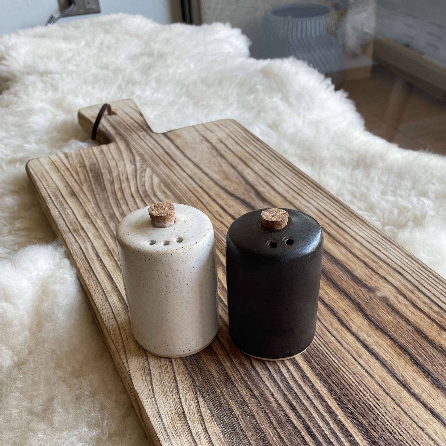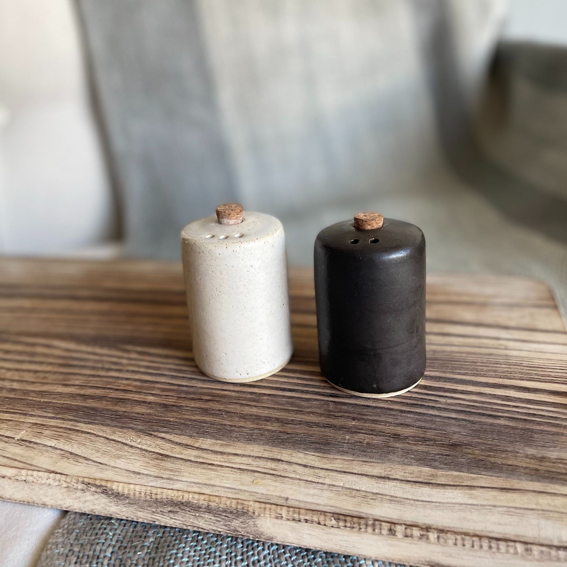 ¡Un infaltable en tu mesa! De diseño minimalista, estos inseparables de toda comida, salero y pimentero, en su versión blanco y negro, ideal para hacer juego con cualquier estilo de decoración. Cada objeto es hecho a mano uno por uno en nuestro taller, al igual que los esmaltes. Es por esto que pueden existir pequeñas variaciones entre los tamaños, formas y colores. Incluye un salero blanco y un pimentero negro. Se recomienda tener cuidado al manipular las piezas.