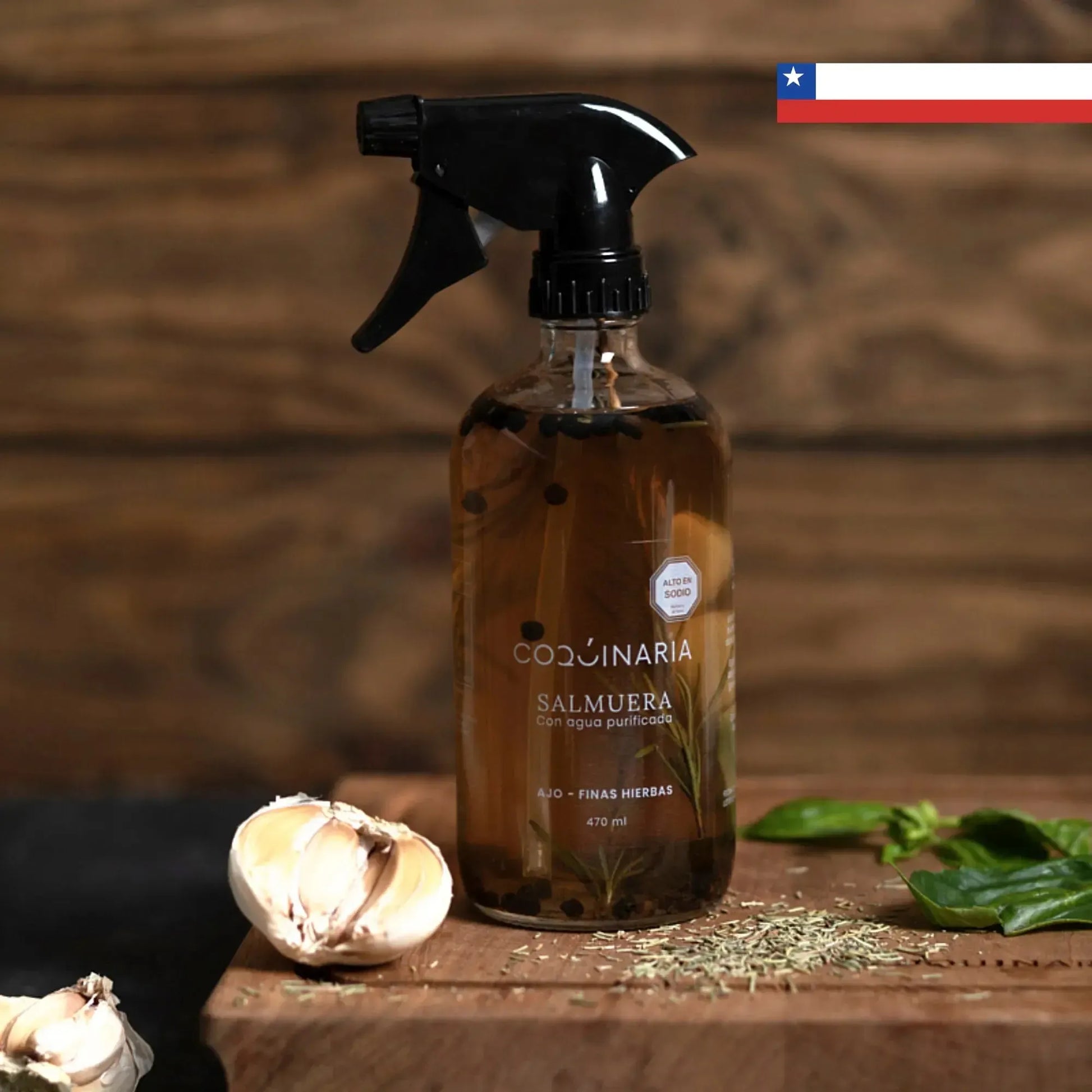 Salmuera con ajo y tomillo Coquinaria: El Secreto para Carnes Jugosas y Llenas de Sabor ¿Sueñas con carnes perfectamente jugosas y con un sabor que despierte aplausos? Nuestra Salmuera Coquinaria es tu aliada indispensable para lograrlo. Creada para humectar e hidratar carnes al spiedo, a la estaca o a la espada, esta salmuera garantiza que cada bocado sea una explosión de sabor y suavidad inigualable.