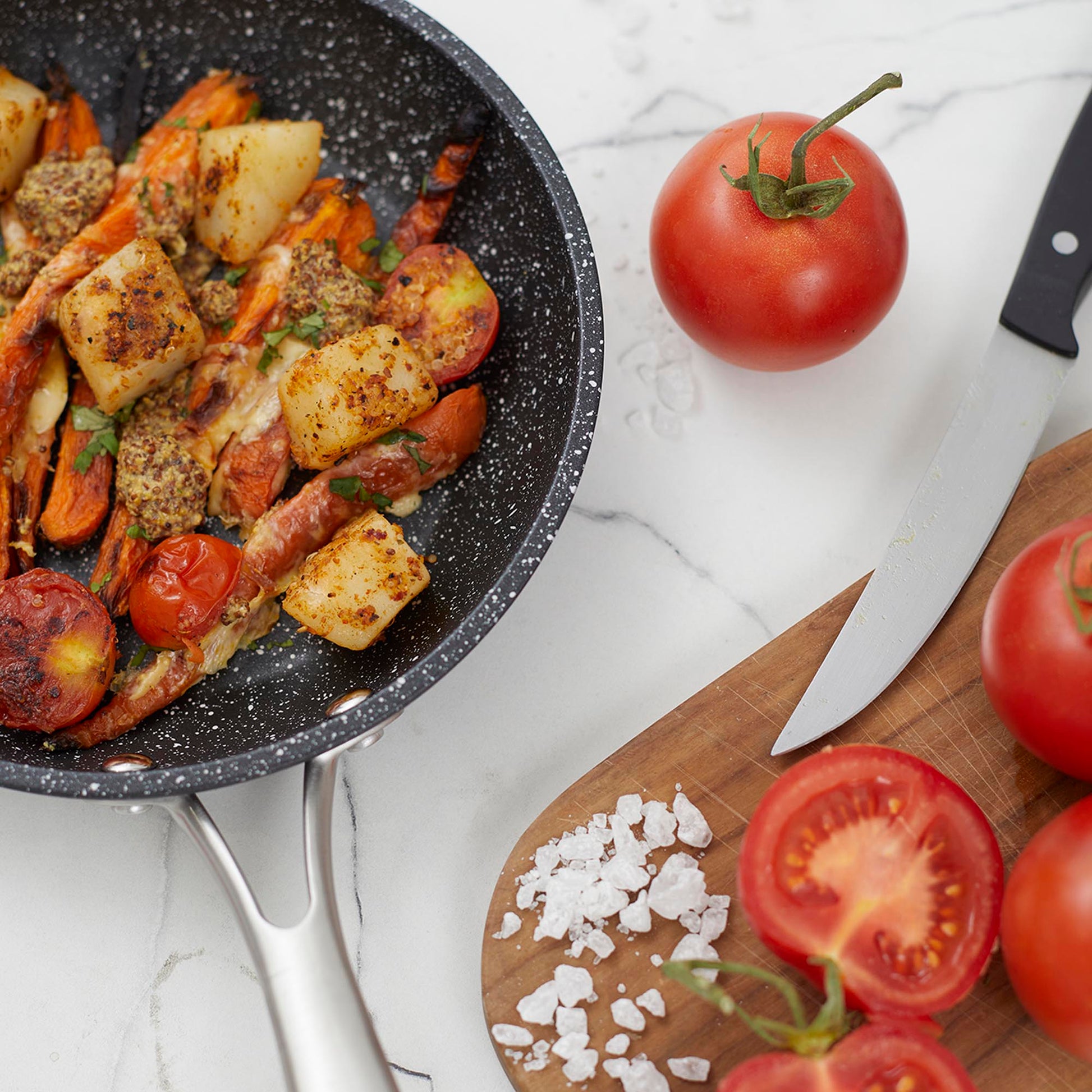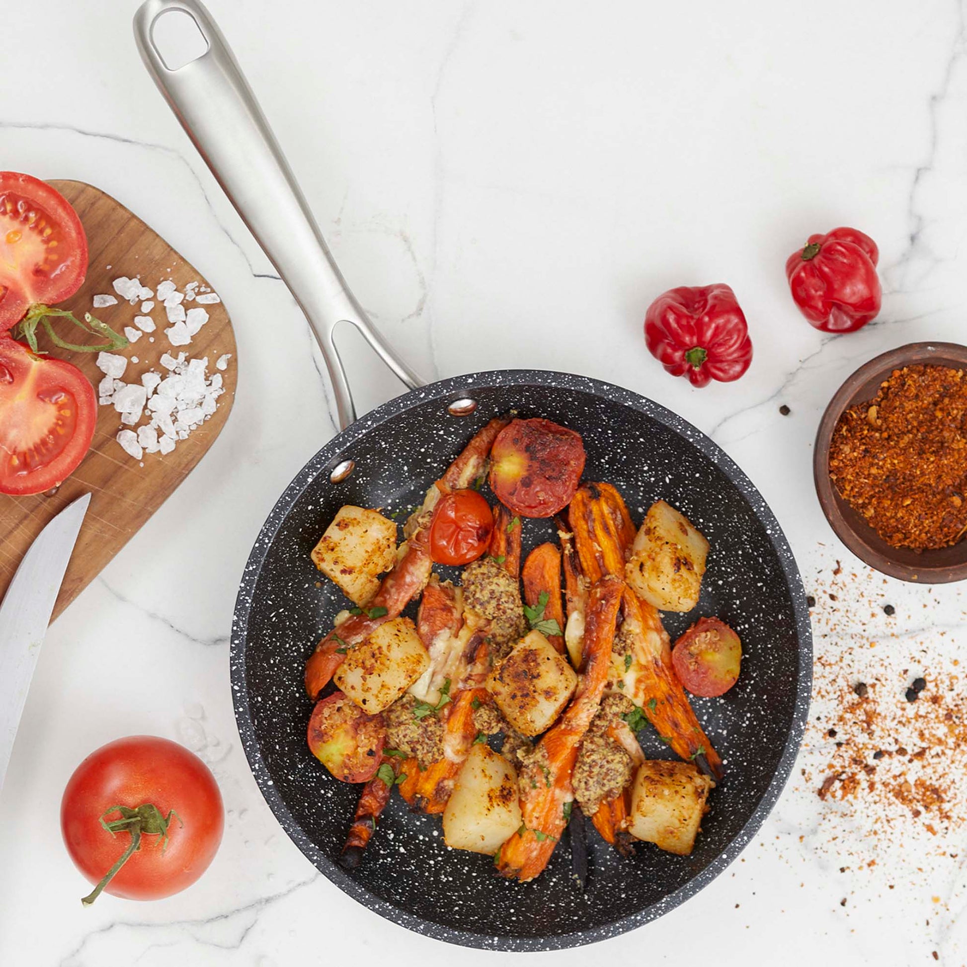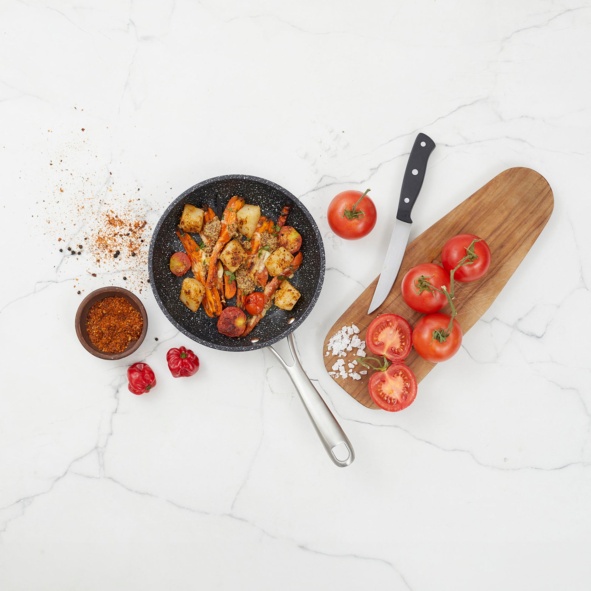 • Características Especiales Cuerpo de aluminio 5.0 mm de espesor con 2 capas de revestimiento exterior soportante a altas temperaturas Doble revestimiento interior GREBLON , y Apto para Lavavajillas