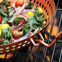 Esta sartén es ideal para saltear vegetales, pescados, mariscos, pequeños trozos de carne sin preocuparse de que se caigan por las rejillas de la parrilla. El diseño perforado drena el exceso de jugo, grasa o grasa mientras permite que las llamas y el humo infundan la comida con el sabor ahumado a la parrilla que anhelan sus clientes. Cuenta con un recubrimiento antiadherente premium de doble capa, a base de silicona, libre de PTFE y PFOA para una cocción segura y sin complicaciones.