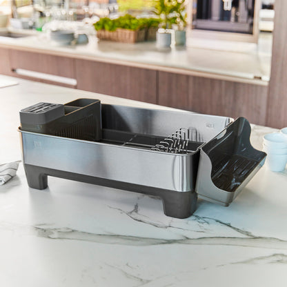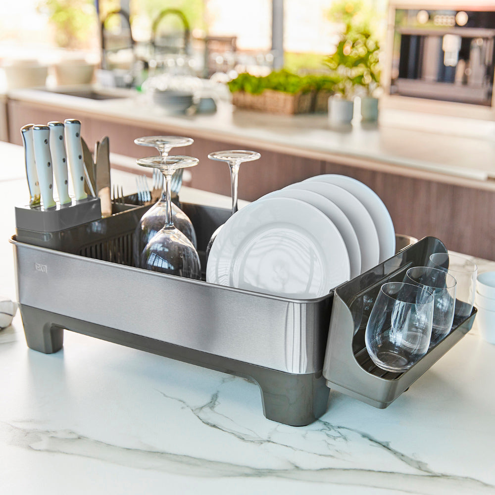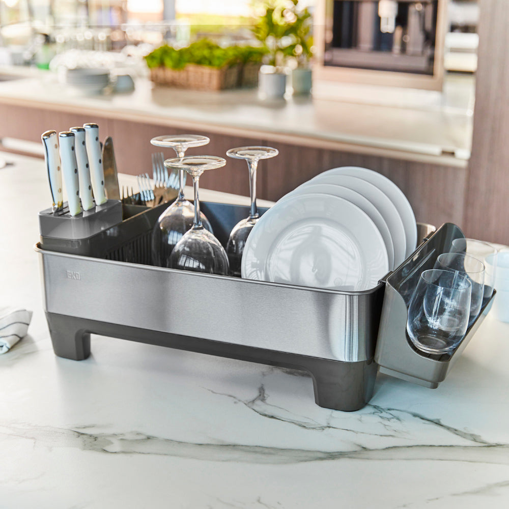 Los secaplatos Large ofrecen un amplio espacio para tu loza y garantizan un secado eficiente gracias a su canal inferior de flujo. Mantén tu cocina ordenada y la vajilla lista para su uso con esta solución práctica.