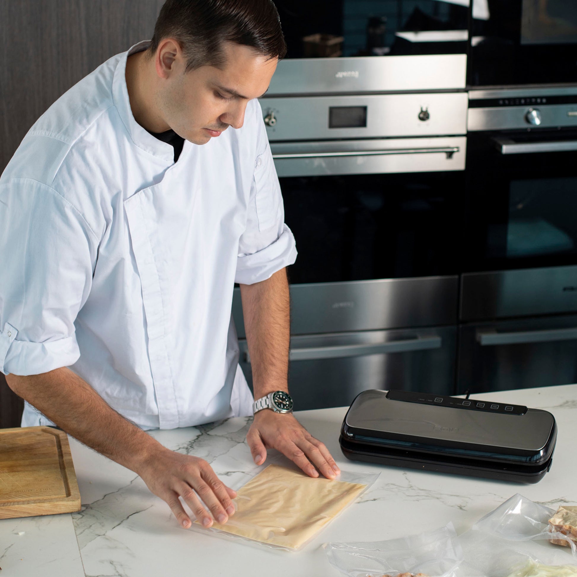 • Características Especiales Mandos Touch Acero Inoxidable, Incluye 1 rollo de sellado al vacio (20 x 200 cms), 5 Bolsas de sellado al vacio (20 x 30 cm), Función sellado al vacio, Función sellado normal, Opción suave, y Opción sellado para preparaciones secas o humedas