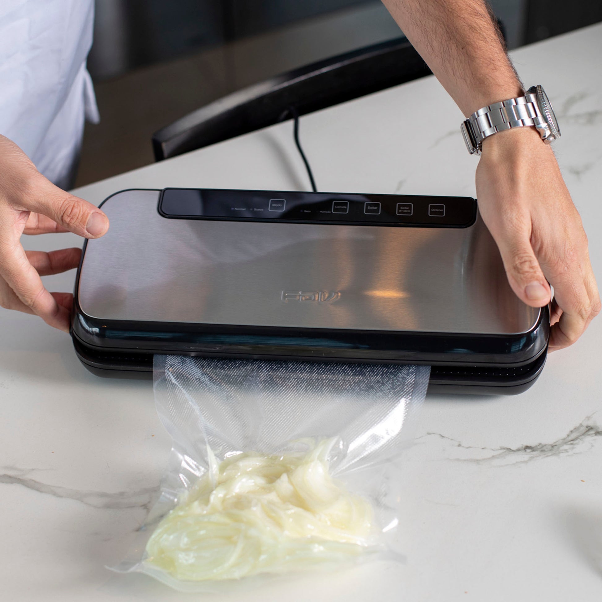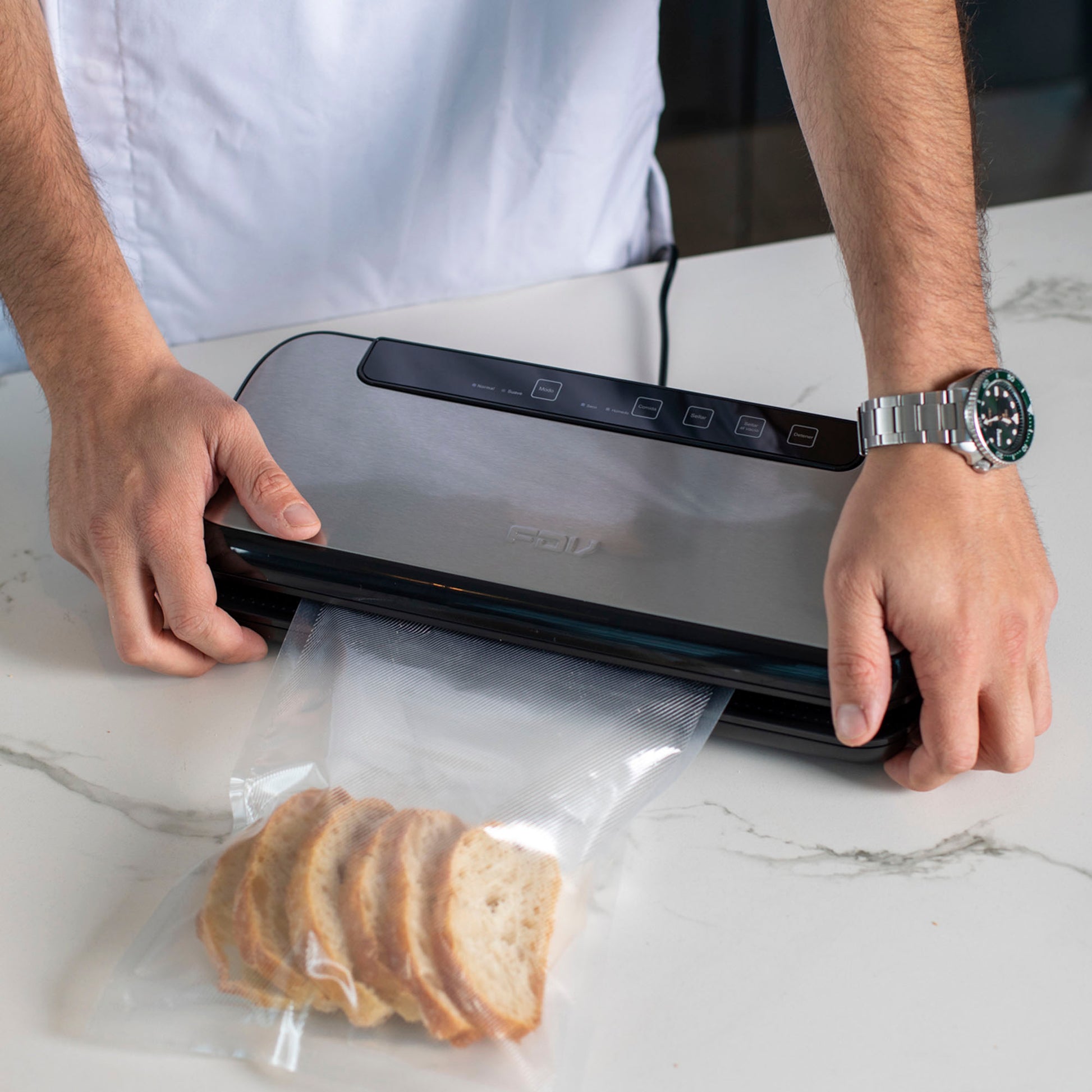 Descubre la innovadora selladora al vacío Astro FDV, con estructura de acero inoxidable anti huellas y mandos touch para un uso fácil. Sella bolsas en 6-10 segundos. Incluye funciones de sellado al vacío y normal, y accesorios como rollo de papel, 5 bolsas y manguera para recipientes al vacío. Ideal para bolsas de 20 cm de ancho, ofrece opciones de sellado suave y normal para preparaciones secas o húmedas. Simplifica tu conservación de alimentos con esta avanzada selladora.
