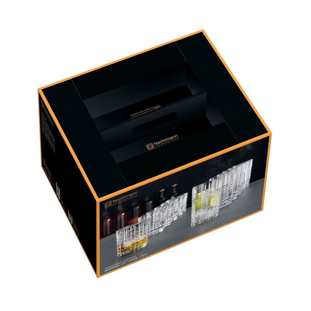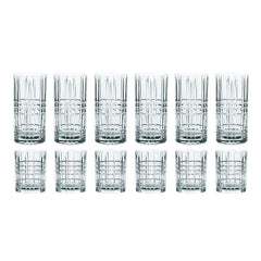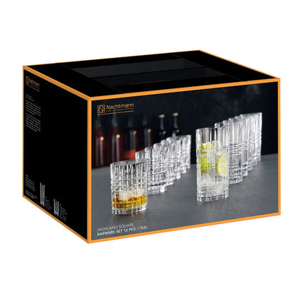 Los vasos largos y whisky Highland son perfectos para whisky, cócteles, jugos y refrescos, y son una verdadera expresión del estilo de vida. Clásicos y con diseño remarcable, estos vasos invitan a disfrutar en compañía. Estos vasos de alta calidad y elegantes añaden un toque de lujo y brillo a la barra de tu casa o a la mesa. El set contiene 12 vasos, 6 vasos largos y 6 vasos cortos. Vaso Largo: Alto: 151mm, Volumen: 445 ml, Vaso Whisky: Alto: 102 mm, Volumen: 345 ml