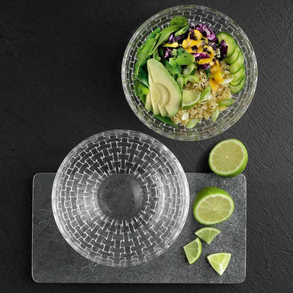 Eleva la presentación de tus comidas con el Set de 2 Bowls para Ensalada Bossa Nova de 18 cm de Nachtmann. Perfectos para ensaladas, postres y aperitivos, estos elegantes bowls con el característico patrón brillante "Bossa Nova" capturan la luz, realzando la frescura y el color de tus platos. Con una capacidad de 1.150 ml y dimensiones de 9 cm de altura por 18 cm de diámetro, estos bowls son la adición ideal para cualquier ocasión, desde cenas informales hasta eventos especiales. Invita a la elegancia y la calidad a tu mesa con este set de Nachtmann.