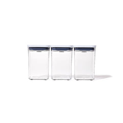 Incluye 3 contenedores cuadrados con tapa y un sello de silicona que se cierra herméticamente al presionarla, manteniendo tus alimentos crujientes y frescos por más tiempo. Además, sus esquinas redondeadas sirven para verter los alimentos suavemente evitando derrames. Son perfectos para guardar alimentos secos tales como legumbres, arroz, cereales, tallarines y frutos secos y su tapa se desarma completamente para poder lavarla de manera más fácil (apto para lavavajillas). Los contenedores están diseñados para apilarse unos sobre otros por lo que son perfectos para optimizar el espacio en tu despensa y mantenerla organizada.