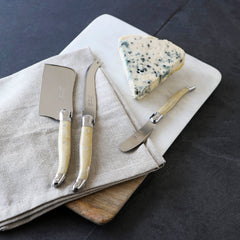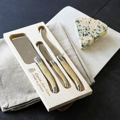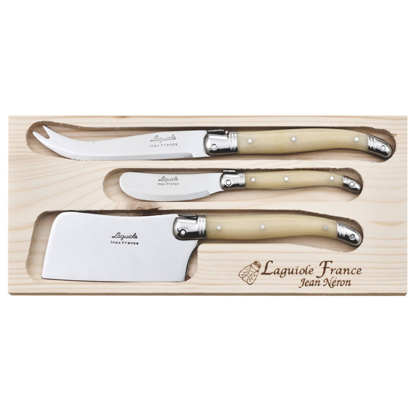 La fabrica JEAN NERON, es una empresa familiar con mas de 100 años de tradición en la elaboración de cuchillos de alta calidad en la zona de Laguiole, Francia. Este set incluye 3 cuchillos para aperitivos: Guillotina, Cuchillo para Queso y Cuchillo de Mantequilla. Contiene su certificado de autenticidad.