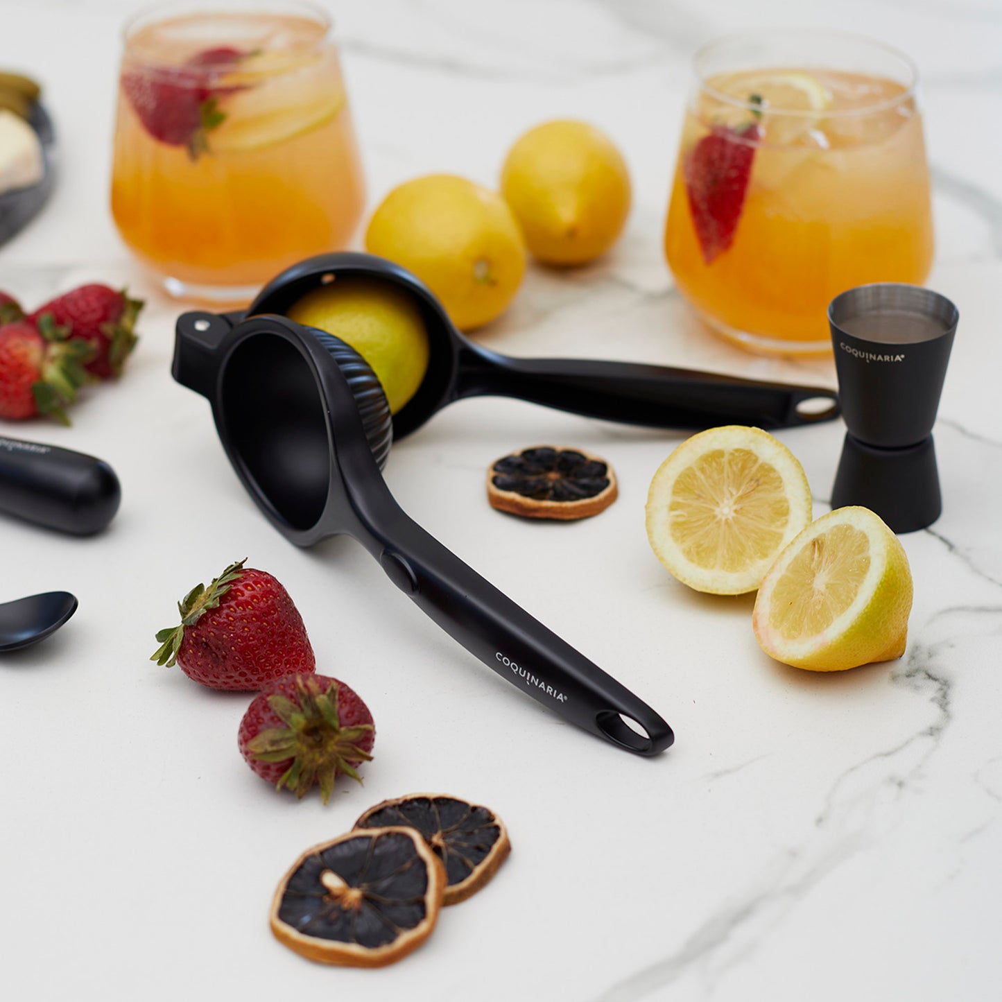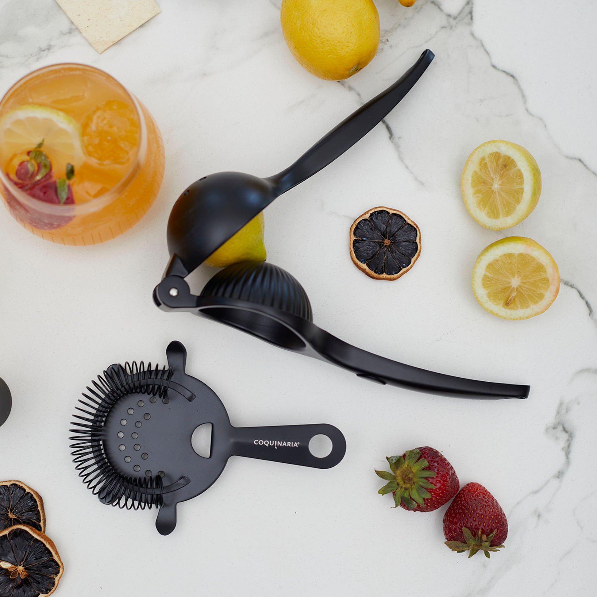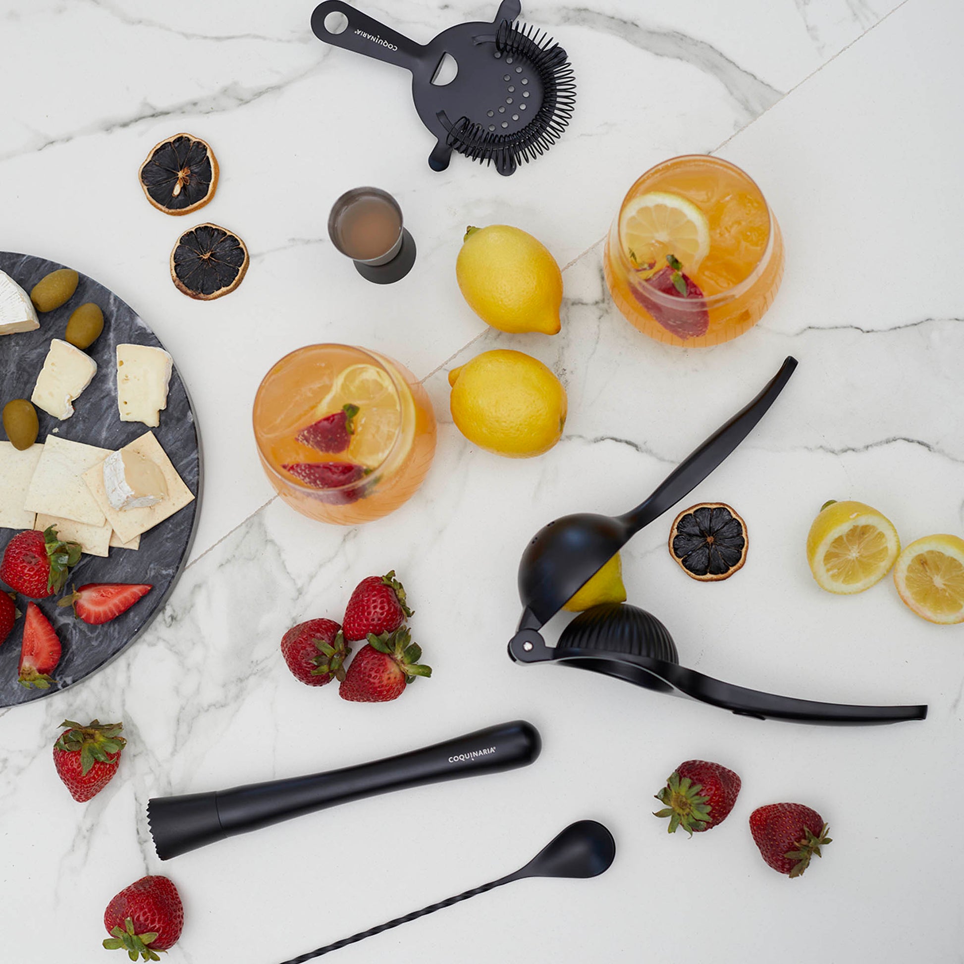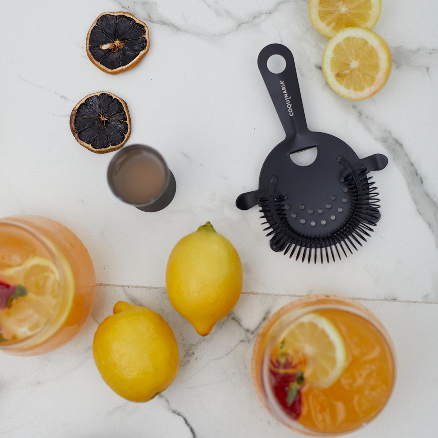 Este kit de herramientas esenciales para cóctel en acabado Matt Black combina funcionalidad y elegancia para quienes buscan perfeccionar cada preparación. Compuesto por un muddler de acero inoxidable, un medidor doble de 15/30 ml, un exprimidor de limón y un colador, ofrece precisión en cada paso, desde el equilibrio exacto en las medidas hasta la frescura de los ingredientes recién exprimidos. Su diseño en negro mate le da un toque moderno y sofisticado, ideal para crear bebidas con estilo profesional en casa. Perfecto para amantes de la coctelería, este set convierte cada mezcla en una experiencia refinada y memorable.