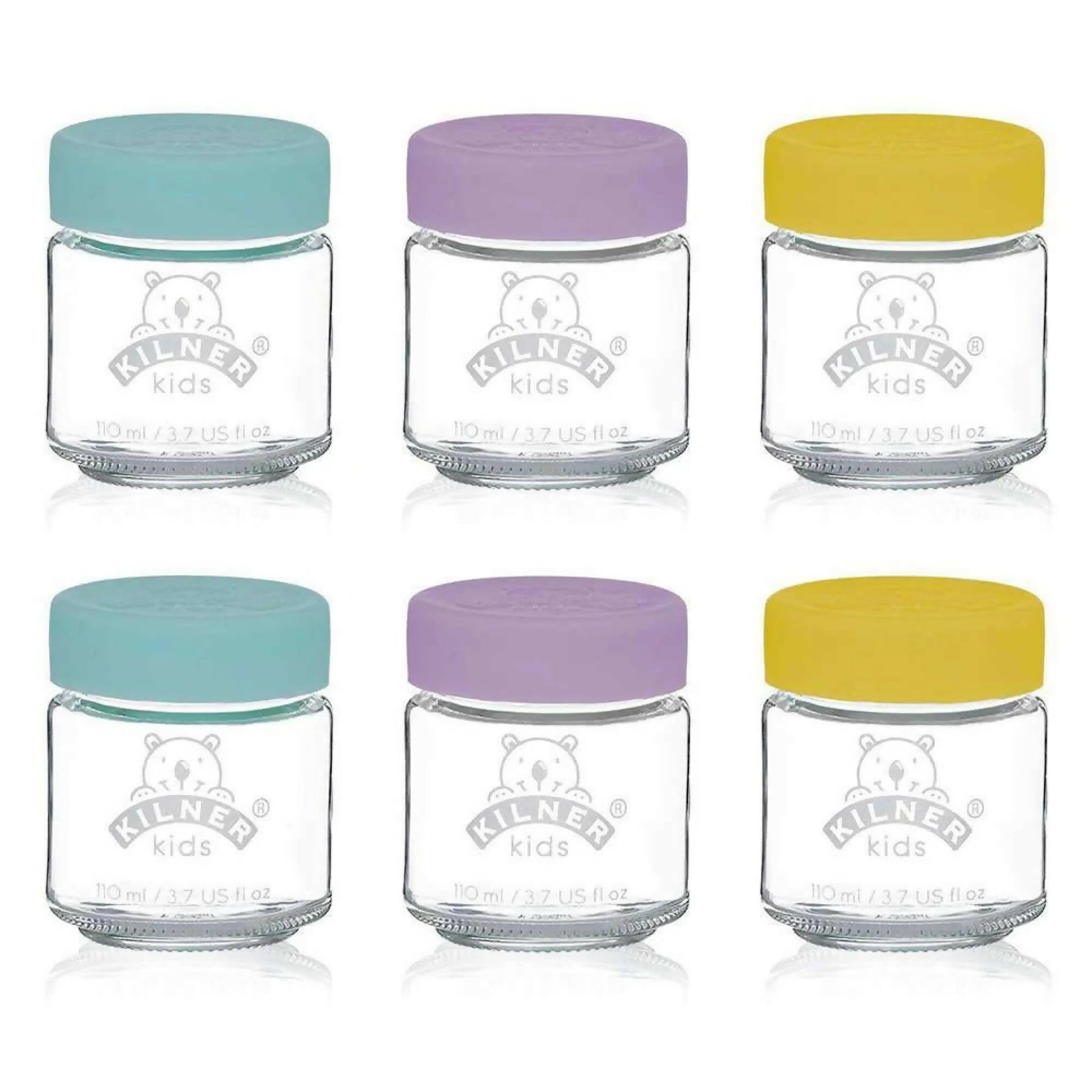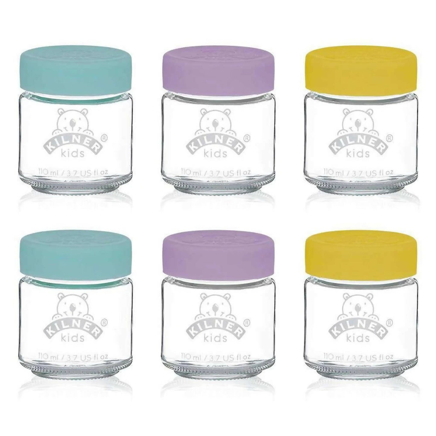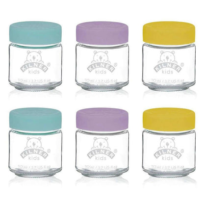 Los frascos para niños de Kilner son ideales para almacenar comida de bebé en vidrio en vez de plástico. Pueden ser almacenados en el refrigerador o freezer y pueden ser calentados en el microondas, listo para servir. Tienen una tapa de silicona a prueba de filtraciones. El set incluye 6 frascos y 12 etiquetas para poner las fechas. Características Técnicas: Capacidad 110ml, Alto 7,5cms x Ancho 12,1 cms, Material: vidrio, País: Reino Unido, Información adicional: no utilizar agua hirviendo directamente en el frasco, limpiar con esponja no abrasiva.