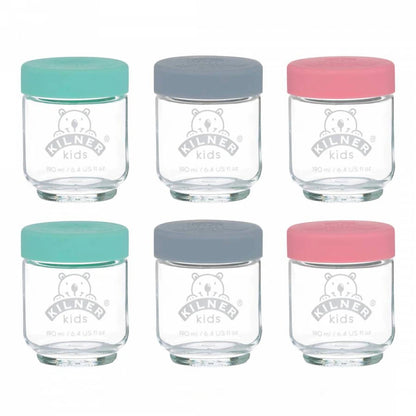 Los frascos para niños Kilner son ideales para almacenar comida casera para bebés en vidrio en lugar de plástico. Hacer purés saludables caseros para bebés no solo ayuda a controlar los niveles de azúcar y sal, sino que también es una forma rentable de complementar las necesidades nutricionales de su hijo. Se pueden guardar en el refrigerador y freezer y se pueden utilizar en el microondas para calentar el contenido del interior, listo para servir. Fabricado con tapas de silicona fáciles para evitar que se derrame. El set incluye 6 frascos de 190 ml con 6 tapas de silicona en tres colores diferentes: gris, morado y turquesa y 12 etiquetas para poner las fechas.