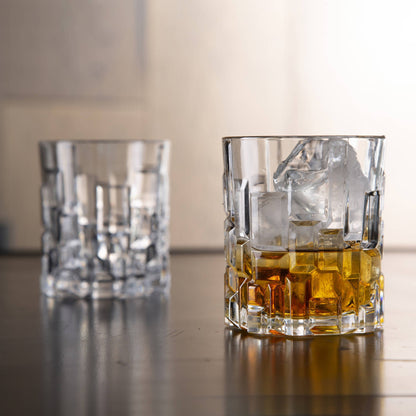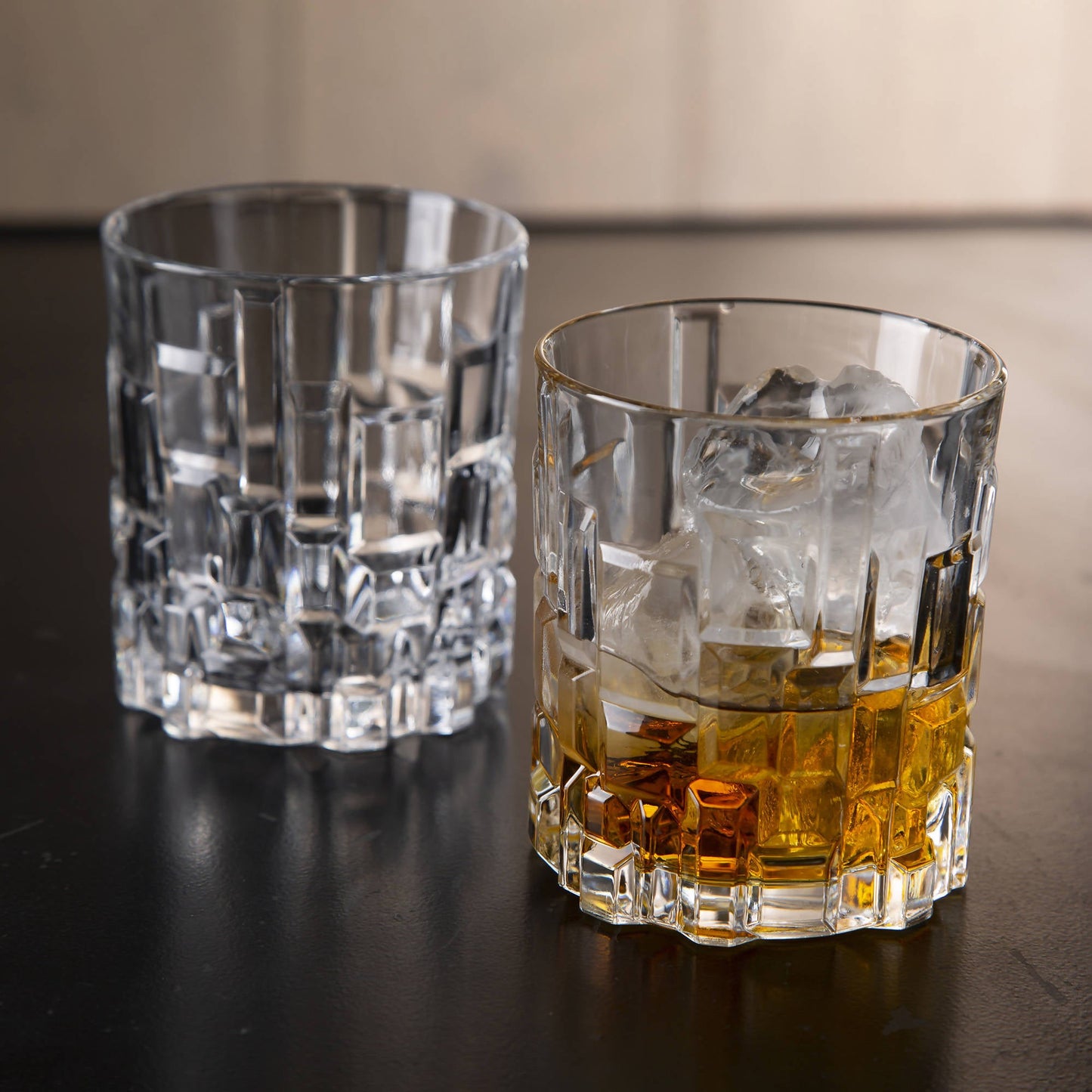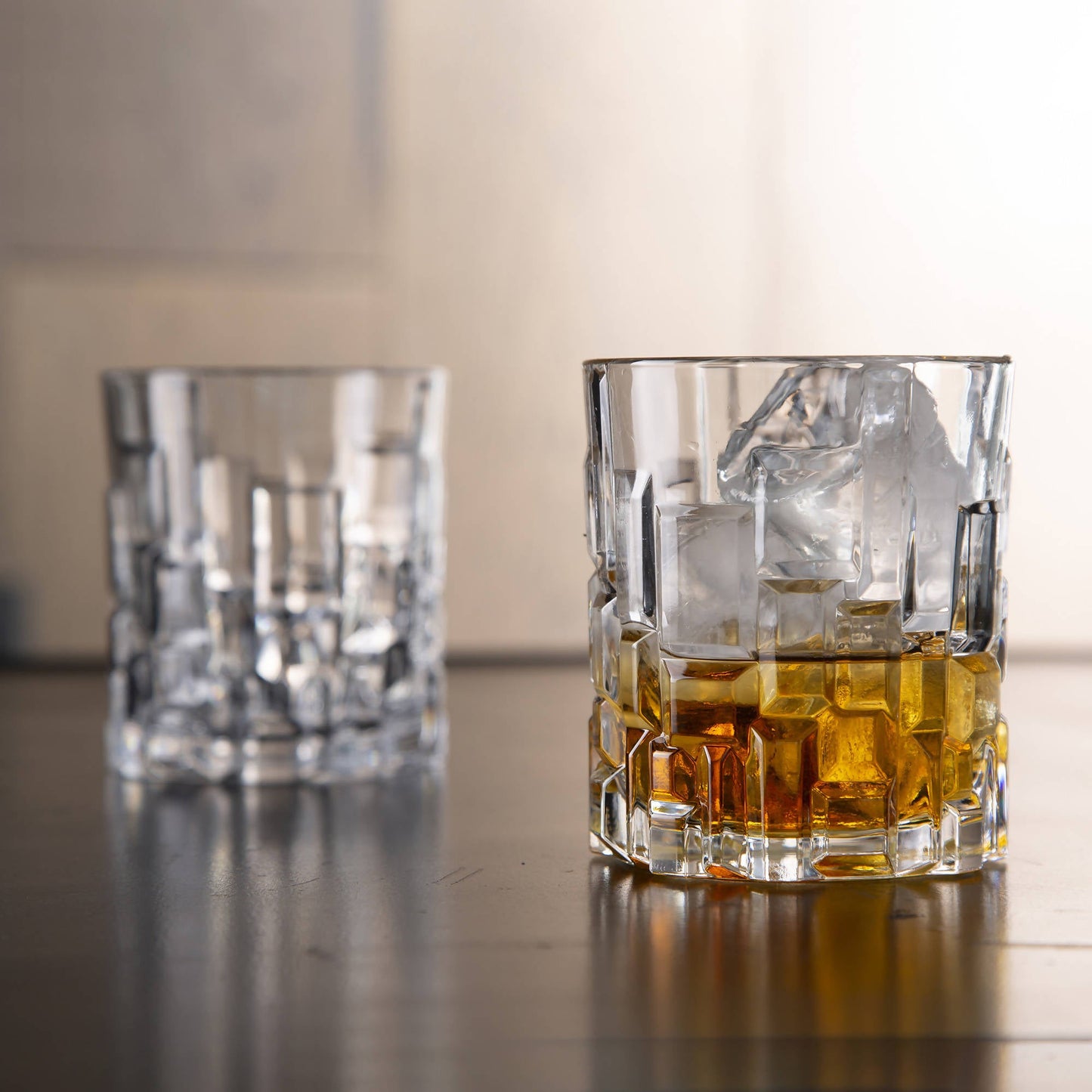 Set de 6 vasos de whisky Etna. Este set de 6 vasos con un diseño moderno y elegantes añaden un toque de lujo al bar o la mesa de tu casa, especial para destacar tus bebidas favoritas y disfrutar de un trago con tus invitados, Prueba tu whisky con la línea Etna de RCR. Hecho en Italia.